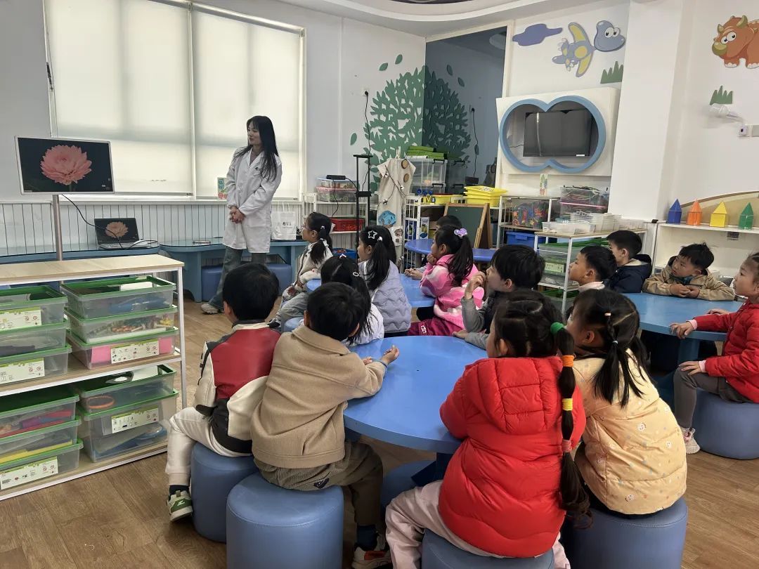 乐山幼儿园中大班科学社团的小朋友们满怀着好奇与期待,在老师的引领下,踏入了缤纷多彩的花卉世界。活动伊始,孩子们的目光被大屏幕上精美的花卉图片和生动有趣的科普视频吸引,借此认识那些平日里在街角、公园常见的花卉品种。从娇艳欲滴的玫瑰,到清新淡雅的雏菊,再到热烈奔放的向日葵,每一种花都在他们幼小的心灵中留下新奇印象。随着讲解深入,花朵从萌芽到绽放的奇妙成长之旅呈现在孩子们眼前,他们专注聆听,知晓了阳光、水分、土壤在这一过程中的关键作用。在老师的指导下,孩子们拿起放大镜仔细观察花朵内部结构,辨别花萼、花瓣、雄蕊、雌蕊,感受生命构造的精妙。