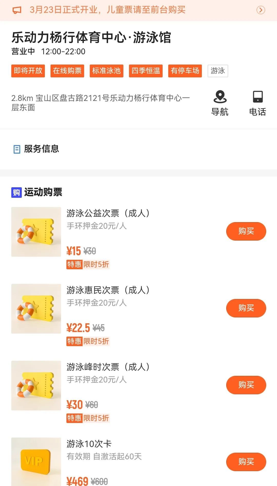 在市民们最为关心的价格方面,从3月23日至3月31日期间,乐动力·杨行体育中心游泳馆推出游泳单次票半价优惠活动,感兴趣的市民朋友可以在微信小程序和支付宝搜索“乐动力体育中心”,找到“乐动力杨行体育中心·游泳馆”根据不同时段进行预约。