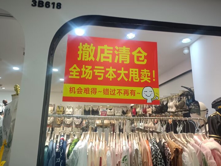 在三楼可看到“撤店清仓,全场亏本大甩卖”字样。 记者坐电梯来到三楼,发现装修较为陈旧,空旷的走道,顾客稀少。销售服装的店铺较多,不时可以看到“撤店清仓,全场亏本大甩卖”“合同到期,全场清仓”的字样。“因为要搬迁了,所以不少店打折或者亏本销售。”一位服装店主告诉记者。在她的记忆中,2015年左右顾客川流不息,甚至要排队才能进。近几年人气下滑,大多剩下一些老租户,已不敢再进新货,只是努力把存货卖掉。