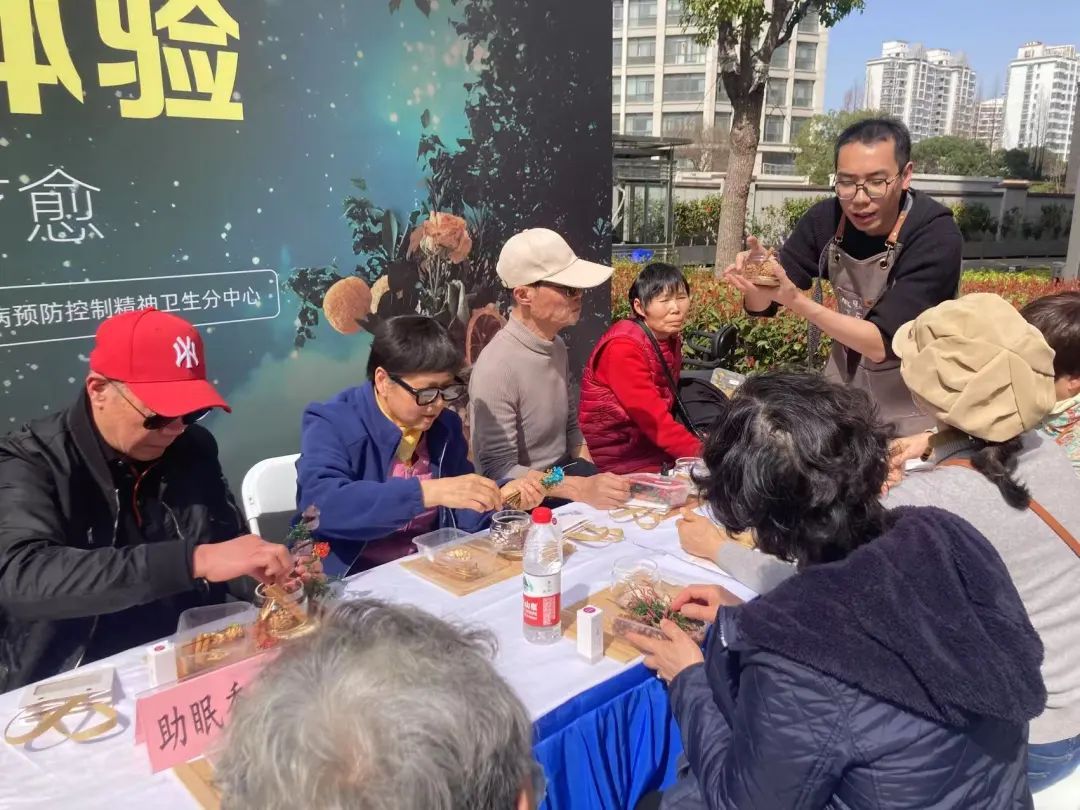 助眠香薰制作区人气爆棚,居民们在专业老师的指导下,亲手挑选干花、调配精油,制作出独一无二的助眠香薰产品。这一环节不仅让居民体验了手工制作的乐趣,更让他们感受到了香薰疗法对身心的舒缓与治愈。
