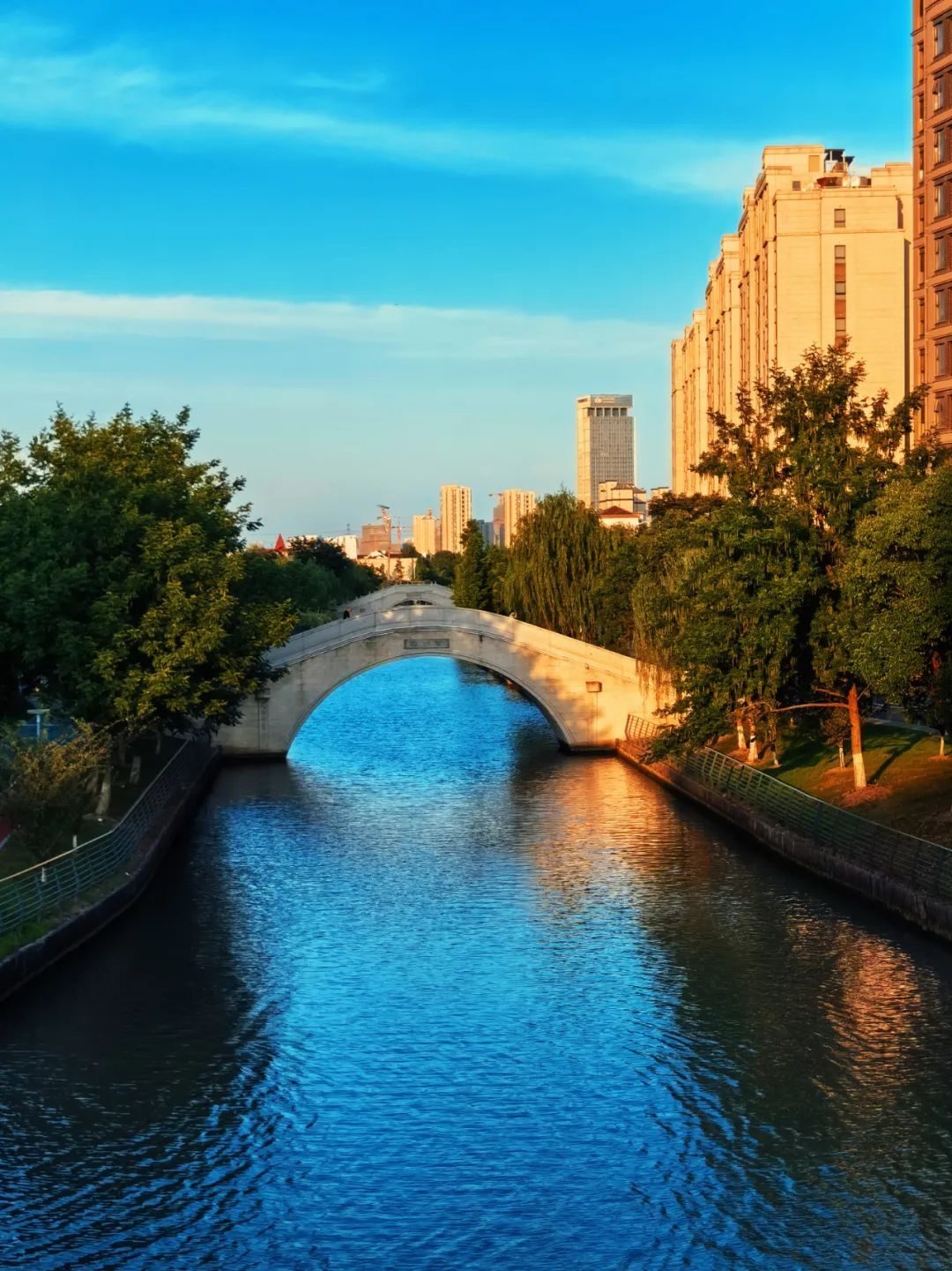 淀浦河蜿蜒如带,倒映着水城门古朴的轮廓,晨光中仿若时空之门,将现代繁华与古之遗韵悄然缝合。