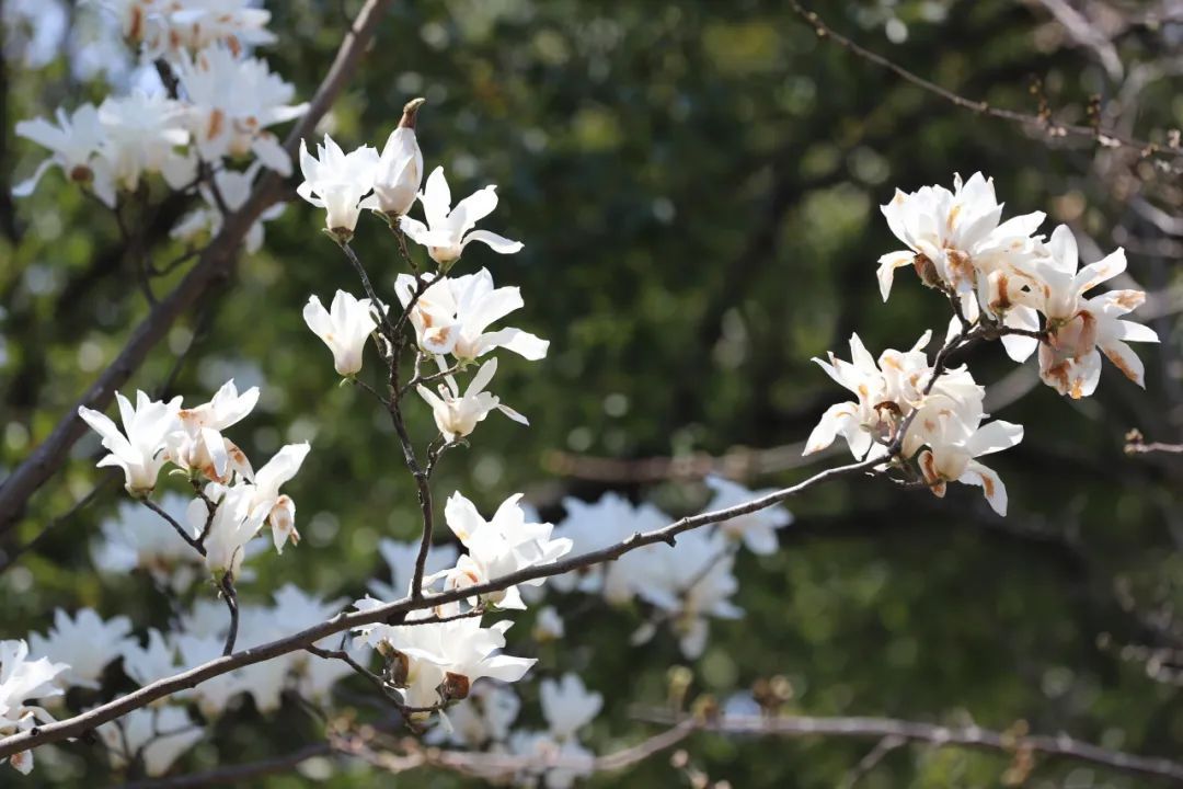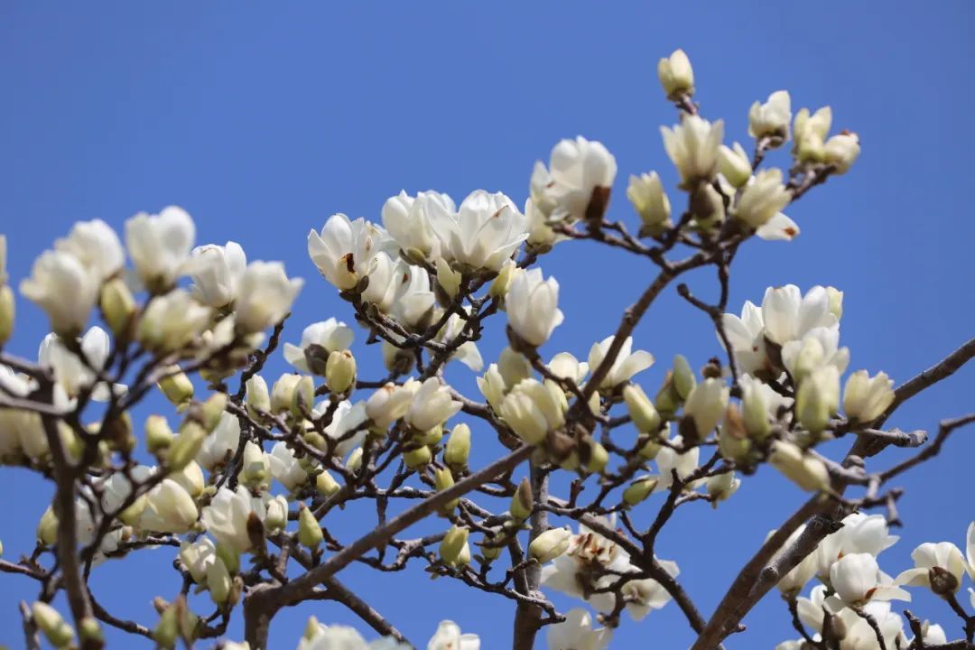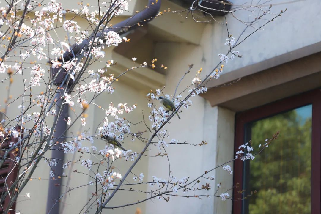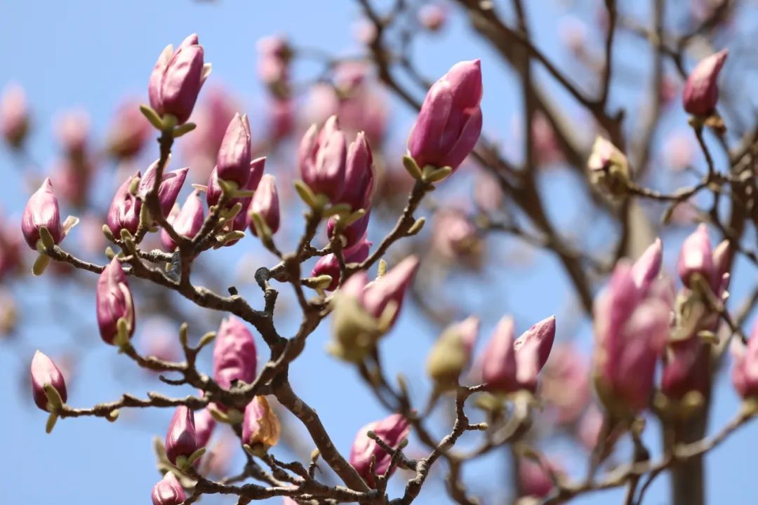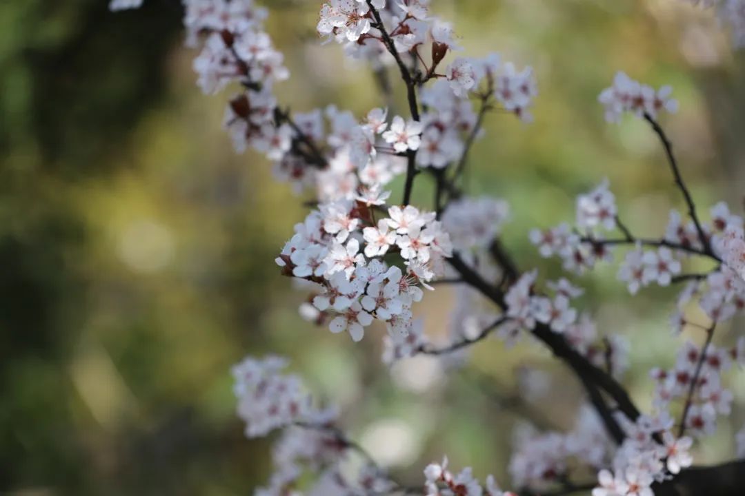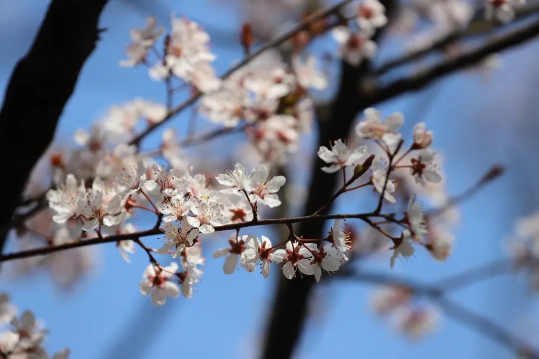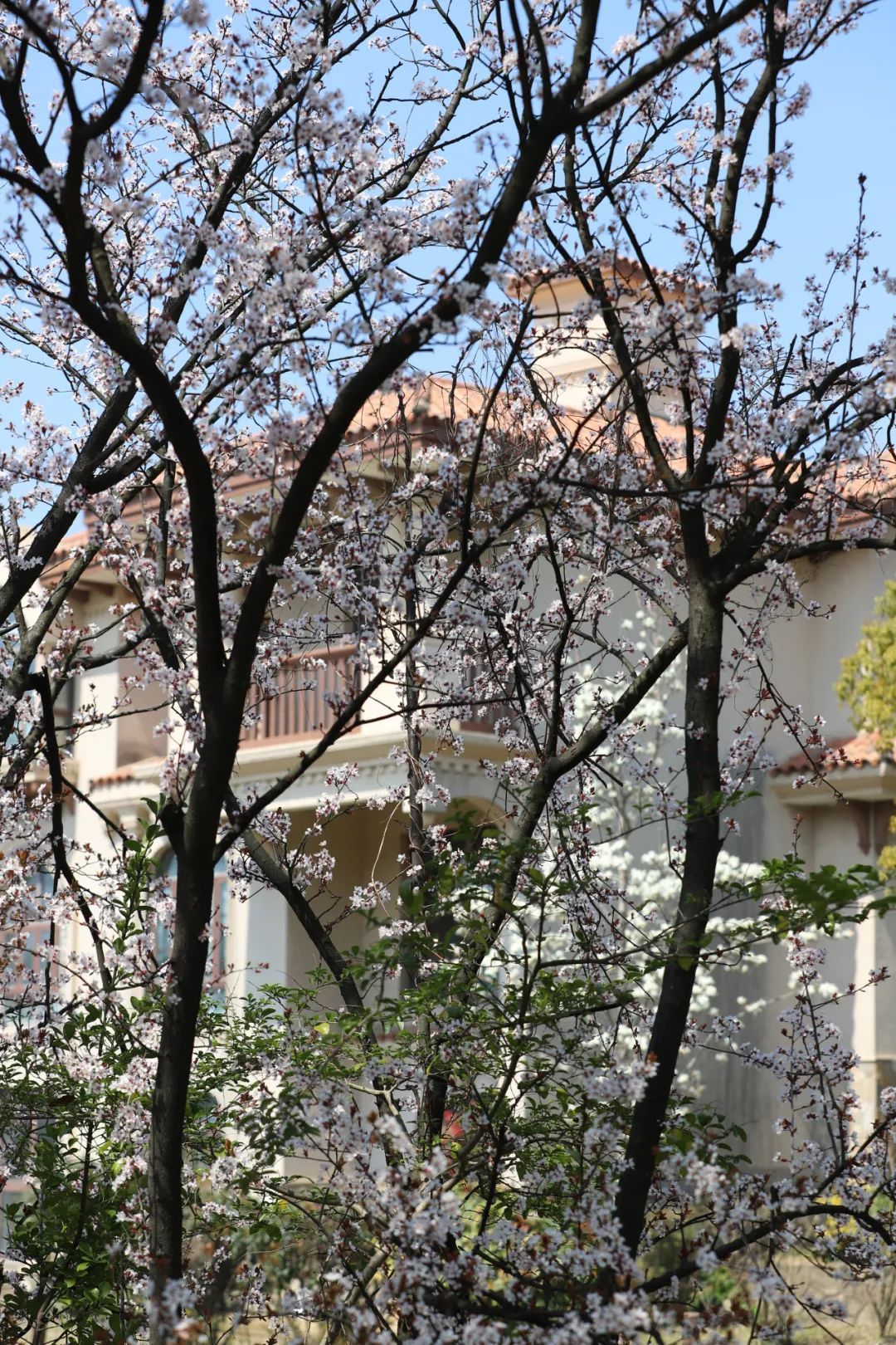 樱花:花瓣尖有V字缺口,花朵数量较多。