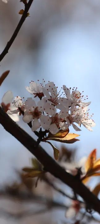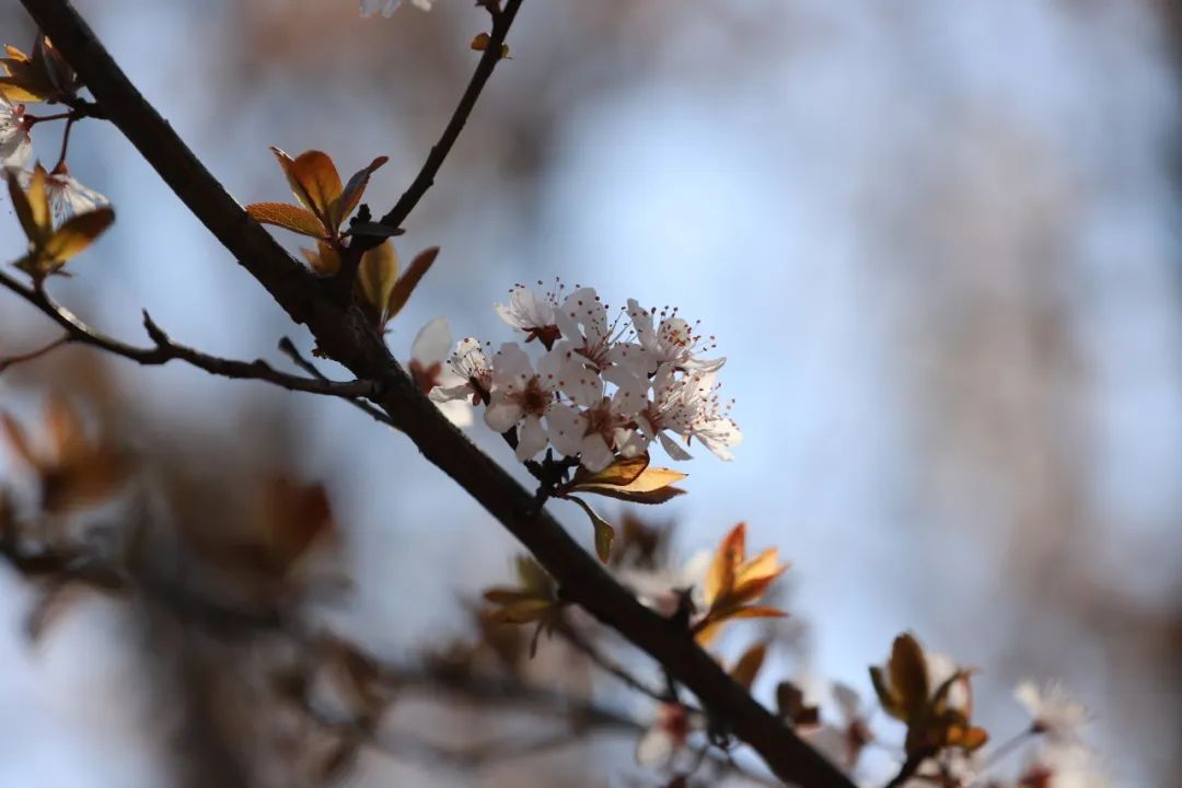 紫叶李:叶片呈紫红色,形状为狭长形,边缘有尖细的锯齿。
