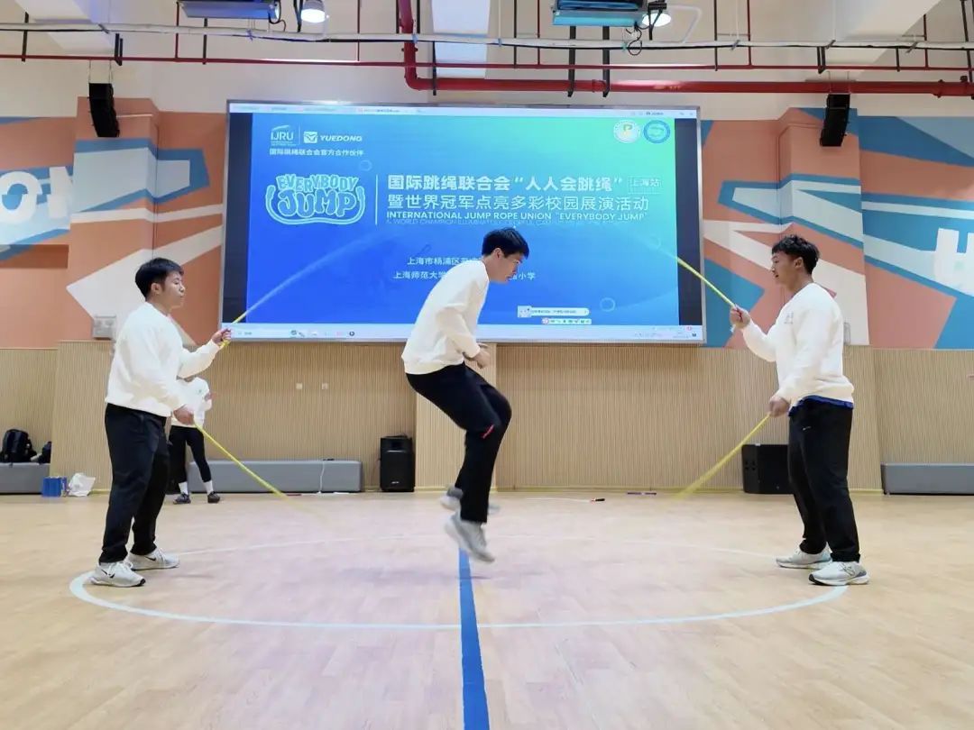 “人人会跳绳”暨世界冠军点亮多彩校园展演活动作为其重点活动之一,同步在上海市三门中学、上海师范大学附属杨浦滨江实验小学、杨浦区教育学院实验小学、杨浦区开鲁新村第二小学、上海市第二师范学校附属小学杨浦北校及上海师范大学附属杨浦现代职业学校6所学校校园掀起热潮。