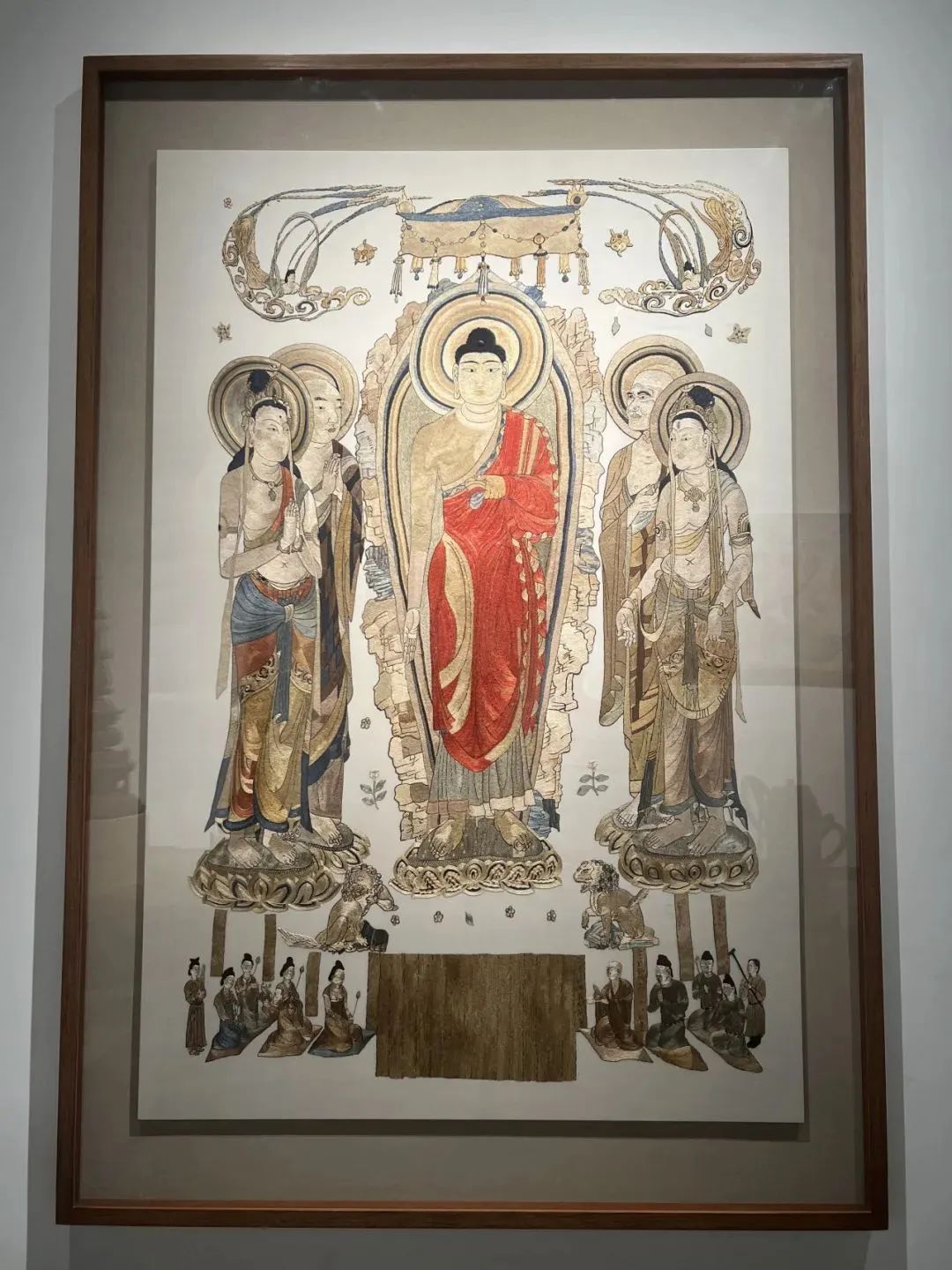 此外,现场使用了上千块香云纱边角料制作而成的《香云纱的涅槃》、重现敦煌莫高窟藏经洞流失海外最大的一幅刺绣品的复绣《凉州瑞像图》等展品,都为展览增添了一抹奇异的敦煌文化色彩,揭开了敦煌文化不一样的一面。