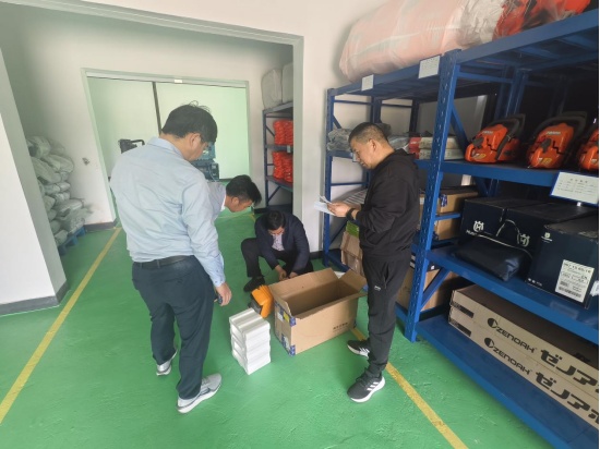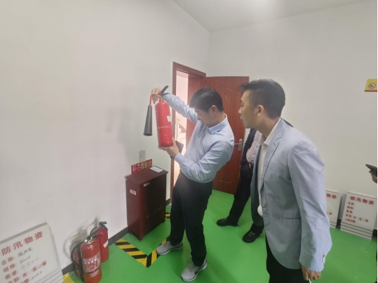 检查组一行前往万安港和北八滧防汛物资仓库,详细查看所储物资的数量、种类、质量,仔细查阅出入库记录、库房巡查、值班值守等台账资料,现场调试运行消火栓、灭火器等消防设备。