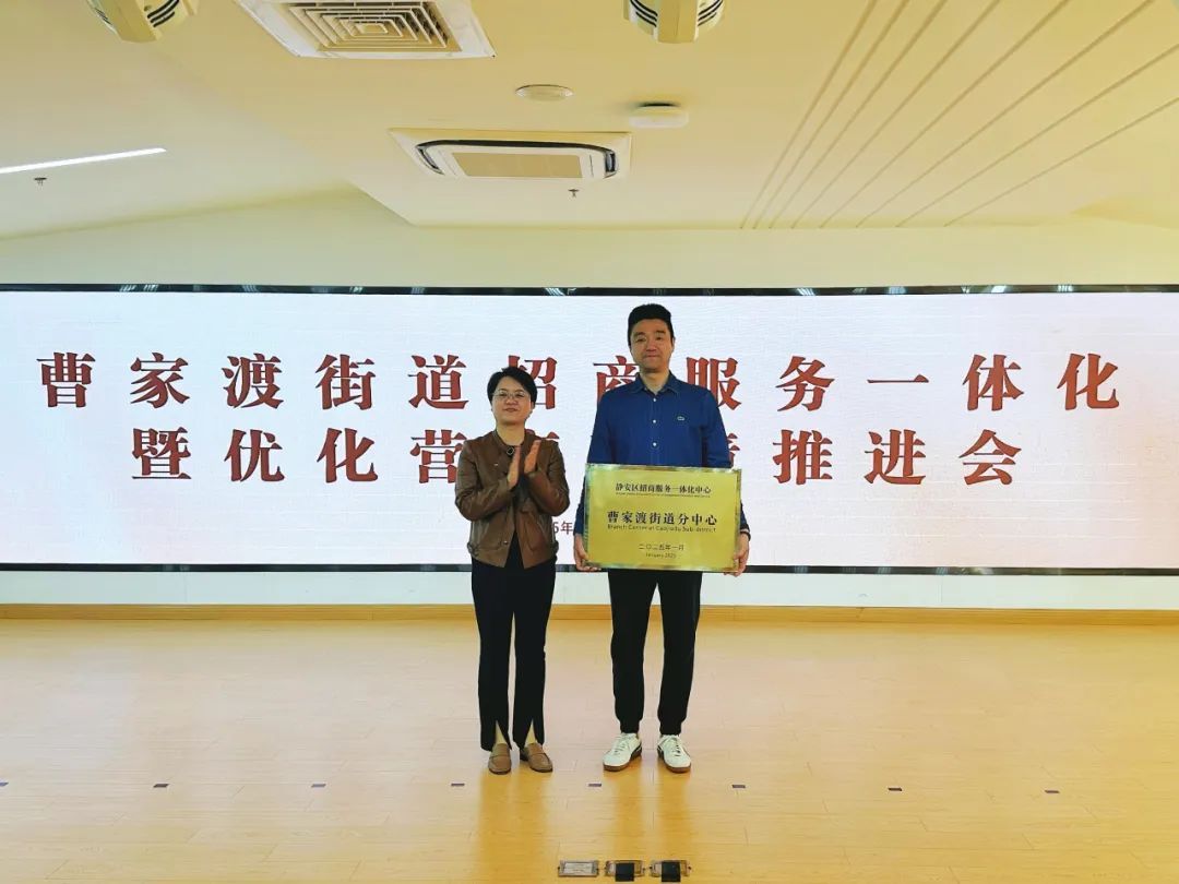 会议为“静安区招商服务一体化中心——曹家渡街道分中心”授牌,标志着曹家渡街道将以更精准高效优质的服务,推动招商服务一体化工作进一步纵深发展。