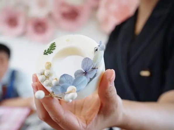 历经岁月沉淀,崇明土布推陈出新,与当代创意美学相结合碰撞出惊艳的土布文创作品。在民俗体验中心,可以在铃兰花钥匙圈、郁金香胸针、香薰花蜡片、香薰蜡烛中选择一项,完成的文创作品可作为花朝纪念礼带回家。