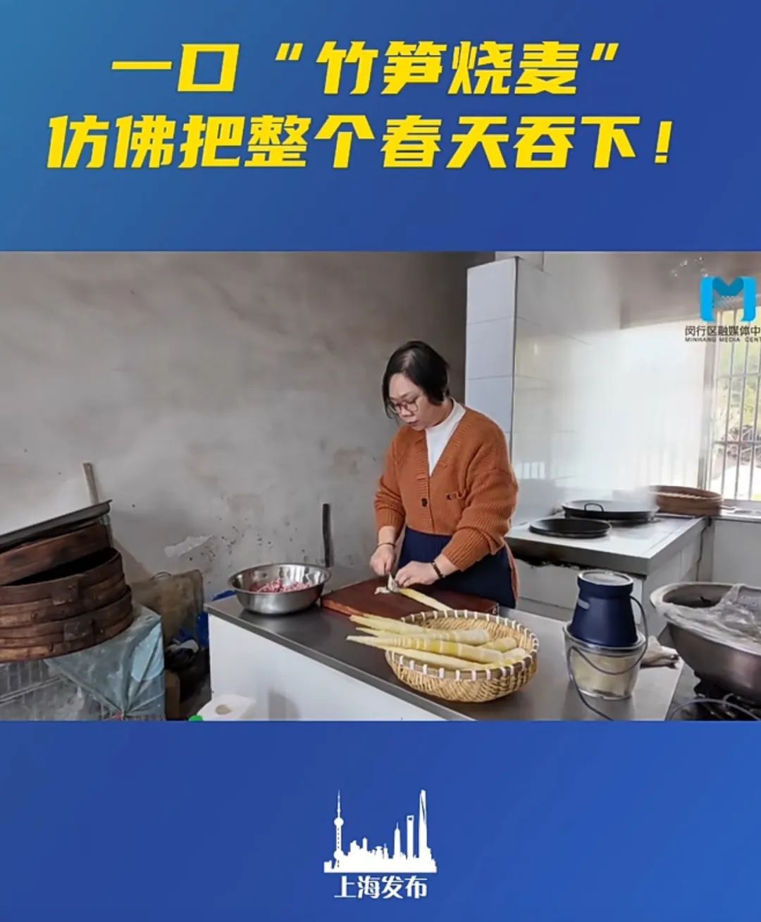 珑妈制作竹笋烧麦的视频登上“上海发布”微信视频号