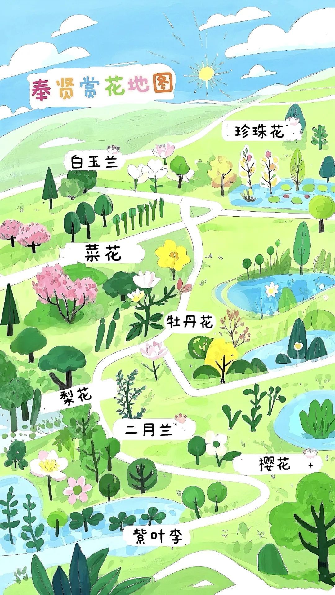 春风裁开冬的暗扣 奉贤的枝桠便蘸着晨露 在褶皱的地图上洇开点点绯云 候鸟驮着春讯掠过杭州湾时 这里的花信风正漫过十二时辰 奉浦街道 四季生态园 @闻燕菁、刘雨宁 春日限定美景,四季生态园的白玉兰已悄然绽放。它们如同春天的使者,高雅纯洁,白如玉、香似兰,满树繁花,尽显春日的浪漫与诗意。在这里,你可以漫步花间,感受花瓣的轻柔,聆听春风的低语,仿佛置身于一幅生动的春日画卷之中。 @郭佳伟 奉城镇 万佛阁 春日悠悠,万佛阁的白玉兰开了。庄重的古刹与洁白的玉兰花相互映衬,红墙黛瓦间,玉兰莹润似雪,硕大花朵绽于枝头。风过时,花瓣轻颤,香气在古刹袅袅香烟里弥漫,禅意与诗意相融,让人沉醉在这独属于春天的静谧美好中。 @万琰 金汇镇 汇一路与金雄路交叉口 悄然间,上班路上多了许多颜色,二月兰随着春天的到来而盛开,从不起眼的零星点点到紫色海洋,河边的柳条也在春风的吹拂下渐渐变绿。 @蒋非凡 四团镇 四团幸福公园 春日的紫色序曲,二月兰花海如梦似幻,铺展在时光的画卷上。 @刁晓庆 西渡街道 水岸家苑 千树万树梨花开,细碎花瓣如初雪纷扬。 @张欣宇 四团镇 四团幸福公园 春风里的白色诗笺,珍珠花在暖风中摇曳,低语着春天的秘密。 @陶诗雨 奉浦街道 韩谊路 @秦吉峰 绯樱 奉浦街道 萧塘 悦澜雅苑 雨丝轻拂,钟花樱在伞下悄然绽放,花瓣如粉色的梦,随风轻舞。脚下的石板路被雨水浸润,映出淡淡的花影,每一步都仿佛踏在春的诗行里。 @蔡怡情 庄行镇 潘垫村 阳光的碎片坠入人间,琥珀色的星辰在绿浪间呼吸,原来春天把亲昵藏在了菜花的褶皱里。 西渡街道 北新村 @刁晓庆 金色潮汐漫过田野,风过掀起阳光的裙摆。 @金冰倩 奉浦街道 秋月朗庭 紫叶李的限定浪漫!粉白花瓣、绛紫叶片在阳光下温柔地绽放,走在这条繁花盛开的大道上不经意间便与这醉人的春光。 青苞初破胭脂色 魏紫姚黄欲绽时 园中牡丹已蓄满春信 4月中旬 欢迎前往 海湾国家森林公园 欣赏牡丹花开盛况