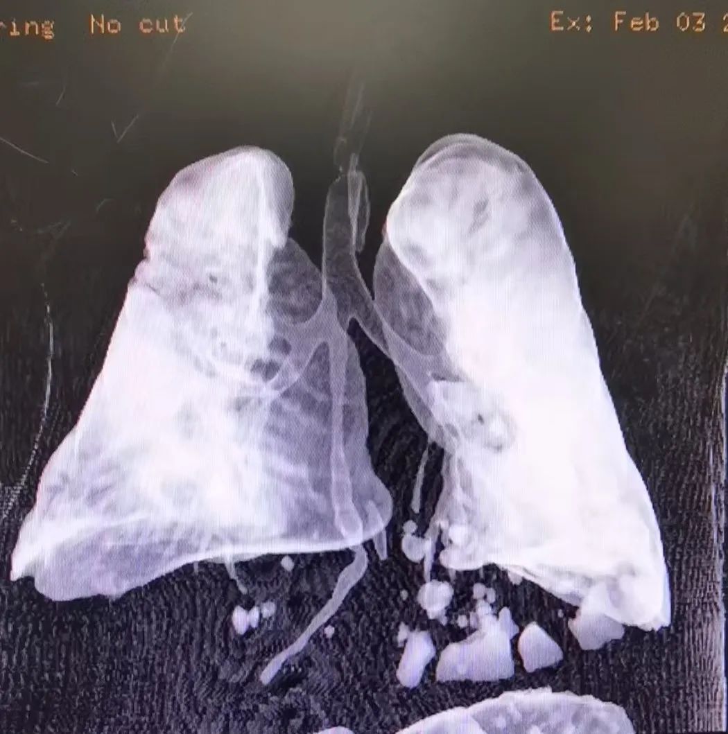 入院后,医院迅速为患儿完善了CT等检查,结果显示气管隆突下方存在异常开口,肝内胆管积气,提示支气管—胆管瘘可能。同时,吸痰时吸引出黄色胆汁样液体,进一步证实了支气管胆管瘘的诊断。因患儿肺部感染严重,经过多学科会诊,医院决定为患儿进行分期手术治疗。