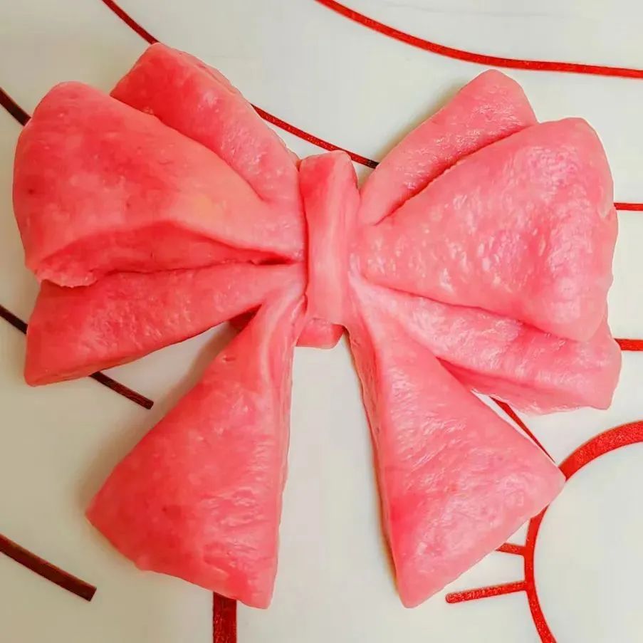 5.根据图片将红色面团整理成一个蝴蝶结,放进冰箱进行冷藏发酵。