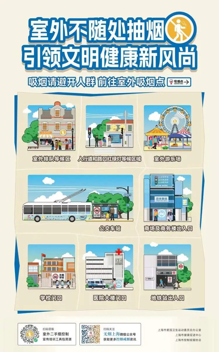 为进一步加强健康城市、人民城市建设,助力优化营商、旅游环境,提升城市文明程度,上海深入推进“控烟行动三部曲”,即“室内全面禁烟、室外不吸游烟、吸烟请看标识”,在加强法定禁烟场所监管执法和宣传倡导的基础上,“疏堵结合”共治室外“游烟”。