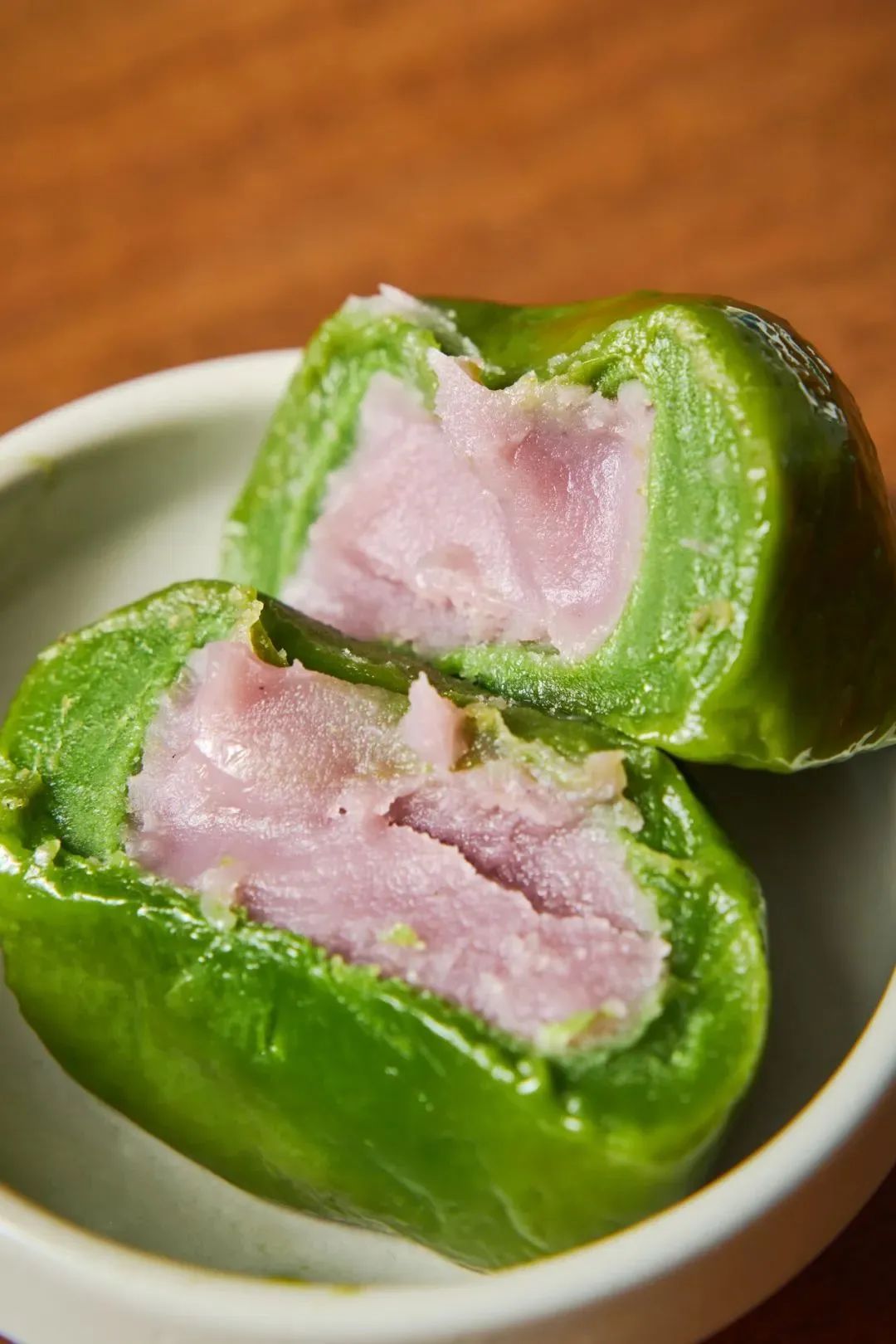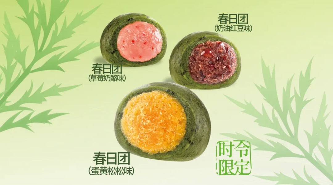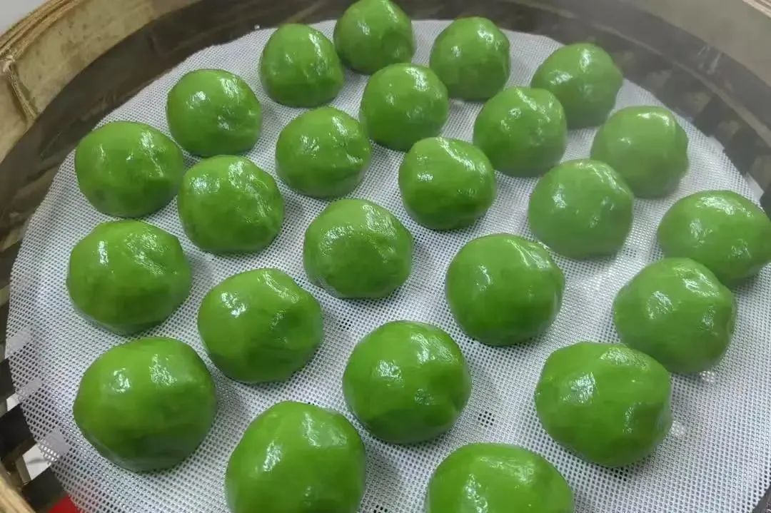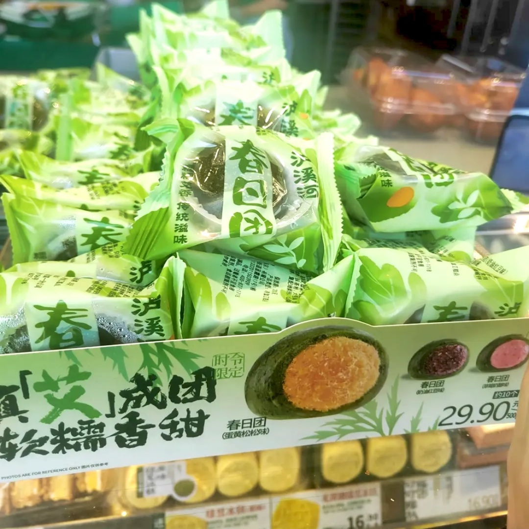 青团价格:豆沙青团5元一个,荠菜肉青团6元一个,咸蛋黄肉松青团8元一个