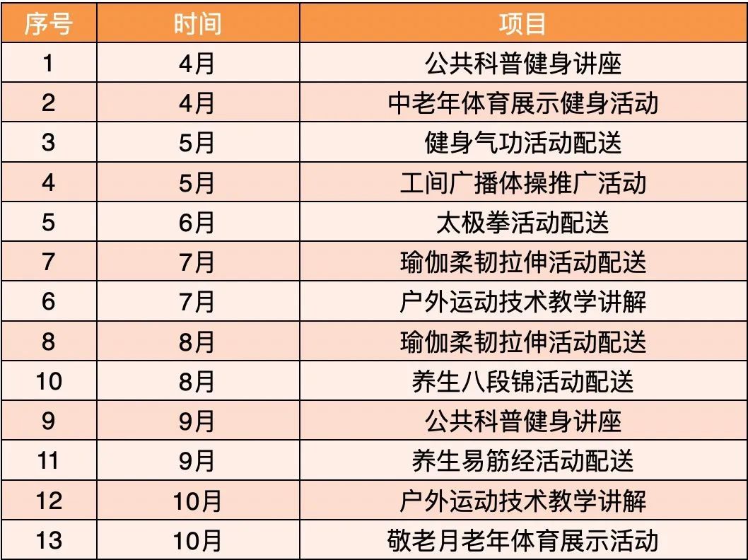 今年全年各类赛事活动精彩纷呈,有适合亲子家庭的趣味运动会,有适合青年人对抗性强的篮球、羽毛球赛,也有老年人喜爱的太极展示,各类体育赛事将以“运动带来无限可能”为主题,参赛范围覆盖社、企、校等各方面,赛事将贯穿全年。此外,各种体育活动也将根据不同需求,配送至社区、企业、街区,让体育服务辐射更多人群。截至目前,莘庄拥有公共运动场7片,190余个社区健身苑点、8条百姓健身步道、14所体育场地开放学校等星罗棋布在社区周边。