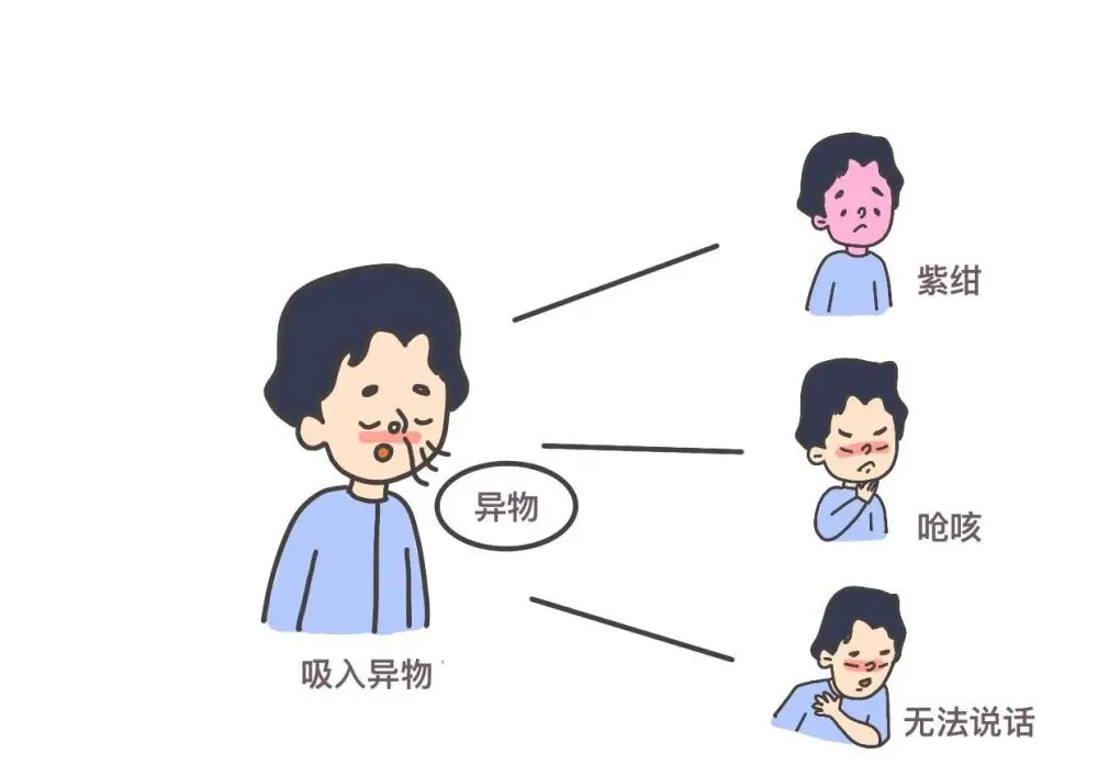1.如果出现突然的剧烈呛咳、反射性呕吐、声音嘶哑、呼吸困难,应考虑气道异物梗阻的可能性。