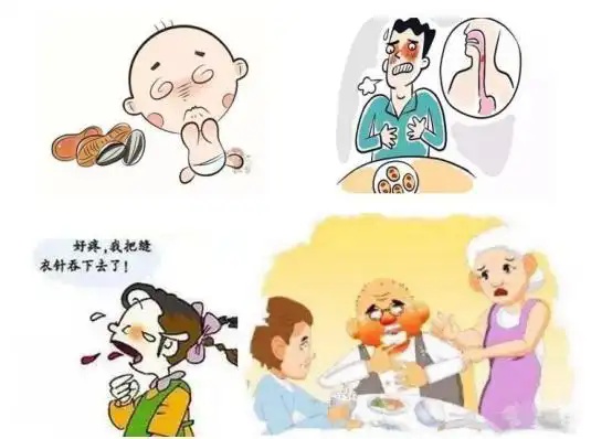 饮食不当:进食时说话、大笑、匆忙吞咽或未充分咀嚼食物等行为。尤其是在食用坚果类如花生、核桃,硬糖或果冻,带骨肉块等。儿童行为和发育特点:3岁以下幼儿,因口腔控制能力差、好奇心强,常将异物放入口中探索,如积木、弹珠、硬币、纽扣电池等,哭闹或跌倒时容易误吸入气道。老年人吞咽功能障碍:衰老导致的吞咽反射减弱、牙齿缺失、唾液分泌减少。中风、帕金森病、阿尔茨海默病等神经系统疾病影响吞咽协调性。当进食黏稠食物(如糯米制品)、服药时干吞、佩戴假牙松动,就会容易出现气道异物梗阻。意识障碍或醉酒状态:昏迷、醉酒、麻醉未苏醒时容易将呕吐物误吸,尤其呕吐后仰卧,容易出现误吸入胃内容物导致窒息死亡。