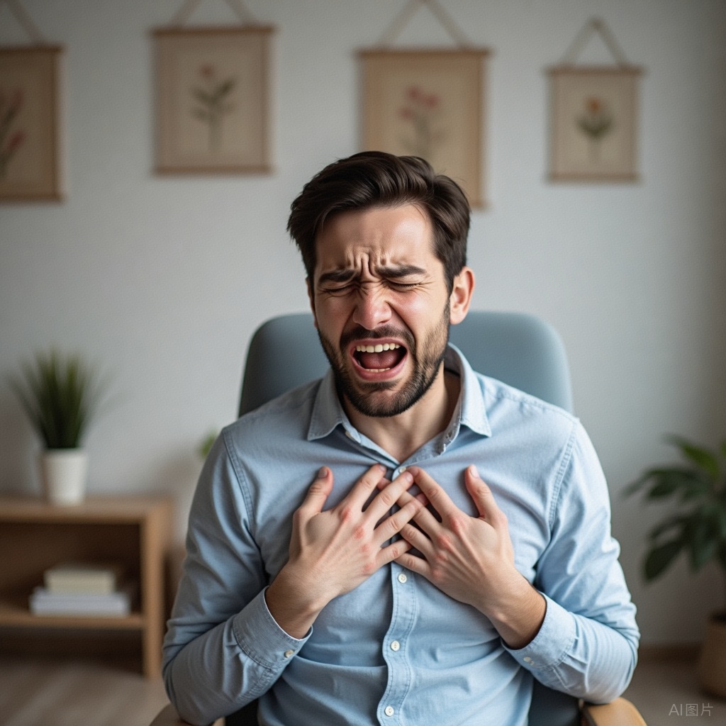 3.患者会表现出极度的痛苦和不适,可能会用手掐住自己的颈部(呈“V”字状),试图缓解梗阻带来的压迫感。