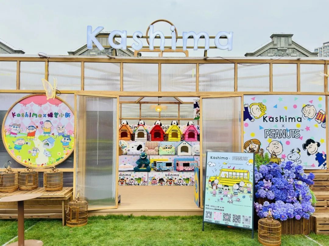 在慎余里广场,Kashima宠物用品IP集合快闪店内,史努比联名猫窝、蜡笔小新周边等各类创意宠物用品,吸引了不少宠物主进店购买。