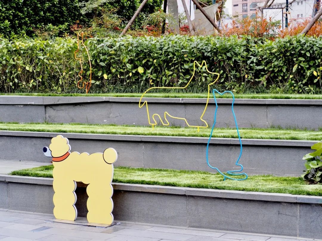 和狗狗一起,与公园绿地里的猫猫狗狗艺术装置合影、在超大草坪上自由奔跑或野餐、逛宠物友好快闪店买创意宠物用品、现场演出和Workshop……