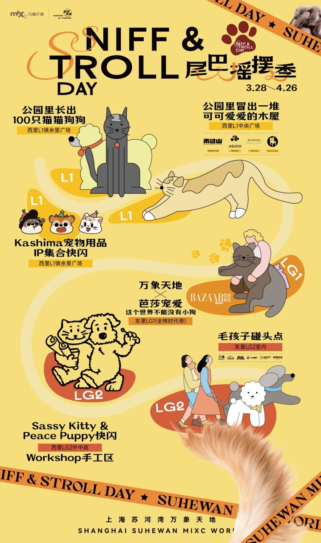据悉,上海苏河湾万象天地“尾巴摇摆季Sniff & Stroll Day”将持续至4月26日,融合社交、生活方式与宠物友好元素,推出一大批专为“毛孩子”定制的有趣活动。