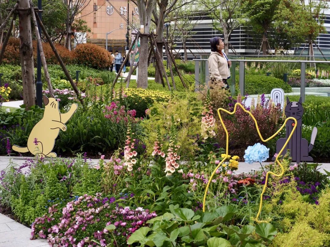 漫步西里慎余里广场,仿佛步入宠物友好乐园。各种充满童趣的猫猫狗狗装置从绿地、广场“长”出来,市民牵着自家爱宠惬意地踱步其间,描绘出一幕幕人宠和谐的友好温馨画面。