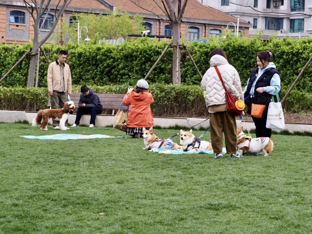 月牙草坪变身“毛孩子社交天堂”,金毛和柯基在草坪上你追我赶,引得围观群众直呼“萌化了”。现场“汪汪喵喵”声此起彼伏,萌力值爆表。