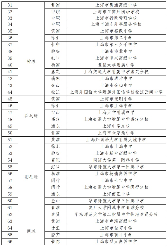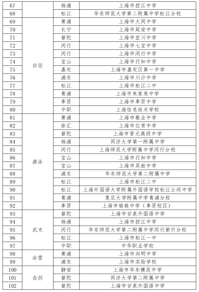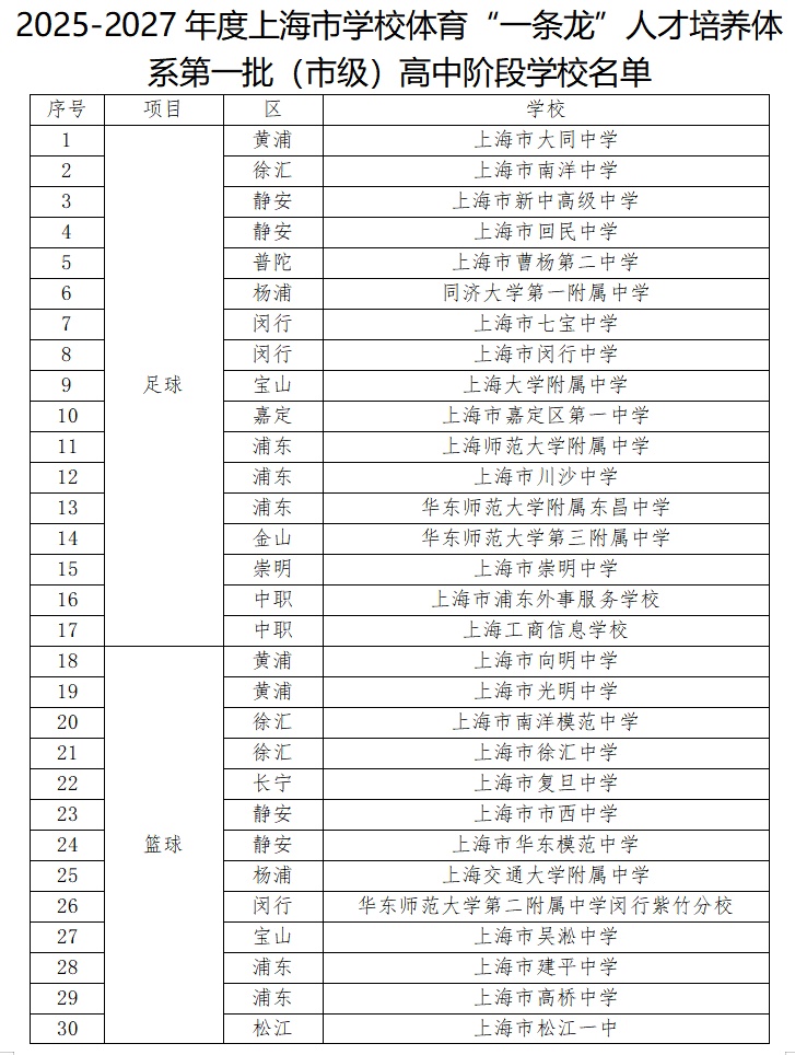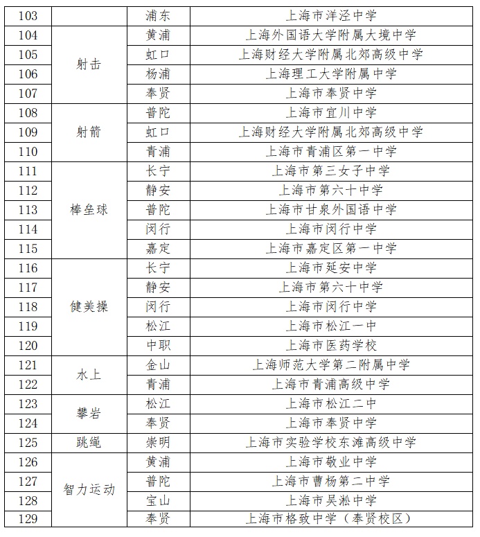 根据此前上海市教育委员会、上海市体育局《关于公布2025—2027年度本市学校体育“一条龙”人才培养体系第一批(市级)高中阶段学校布局项目及做好相关建设发展工作的通知》,2025—2027年度上海市学校体育“一条龙”人才培养体系项目共129个,新增了跳绳、帆船、帆板、攀岩等项目。