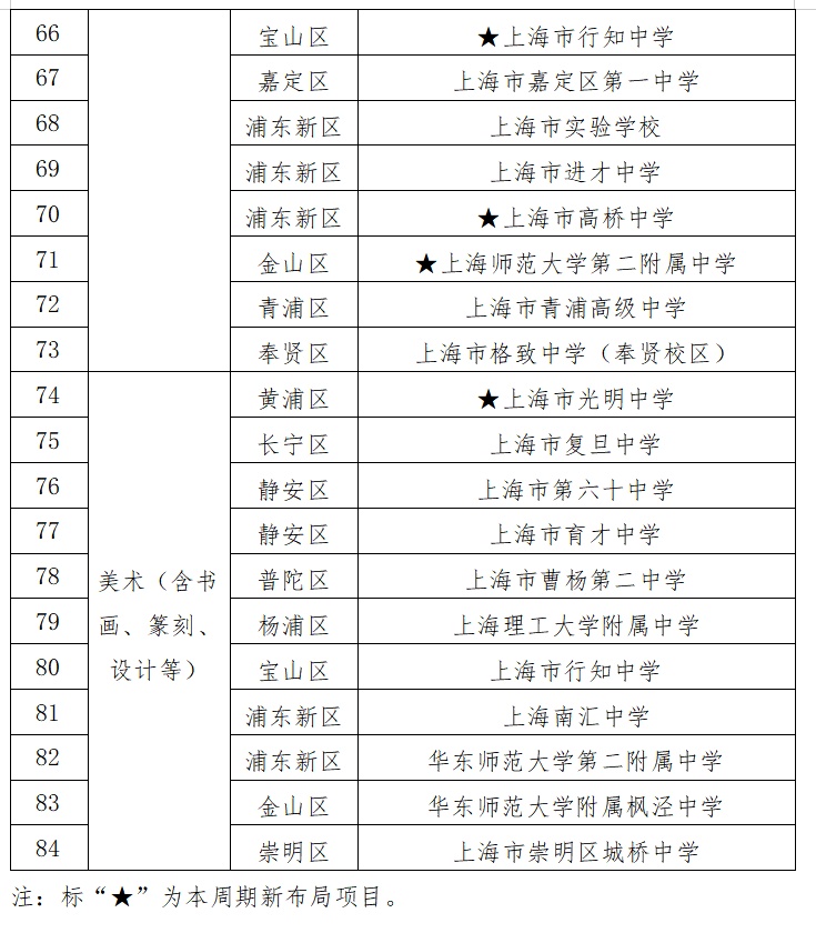近日,上海教委等5部门印发《上海市中小学艺术工作管理办法》,提出为艺术人才贯通培养搭建阶梯,部分学校今年的艺术骨干学生招生计划也有增加。上海交通大学附属中学在去年招收3位戏剧项目艺术骨干生的基础上,今年将招生计划增加到5个,另外学校今年还将招收民乐项目艺术骨干学生,包括二胡、竹笛、笙、唢呐、柳琴、琵琶、中阮、扬琴、大提琴、低音提琴、打击乐等分项,共6人;上海市进才中学同样新设民乐项目,计划招生8人;上海市七宝中学新增舞蹈项目市级艺术骨干学生,计划招生3人,为中国舞表演方向;上海师范大学附属中学闵行分校的管乐项目招生从5人增加至7人等。