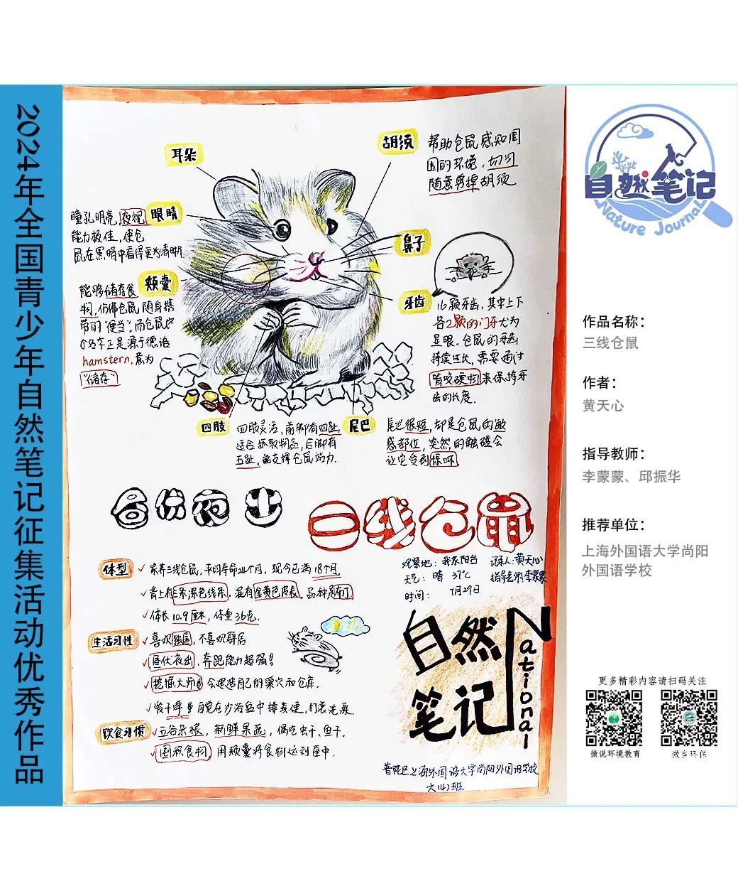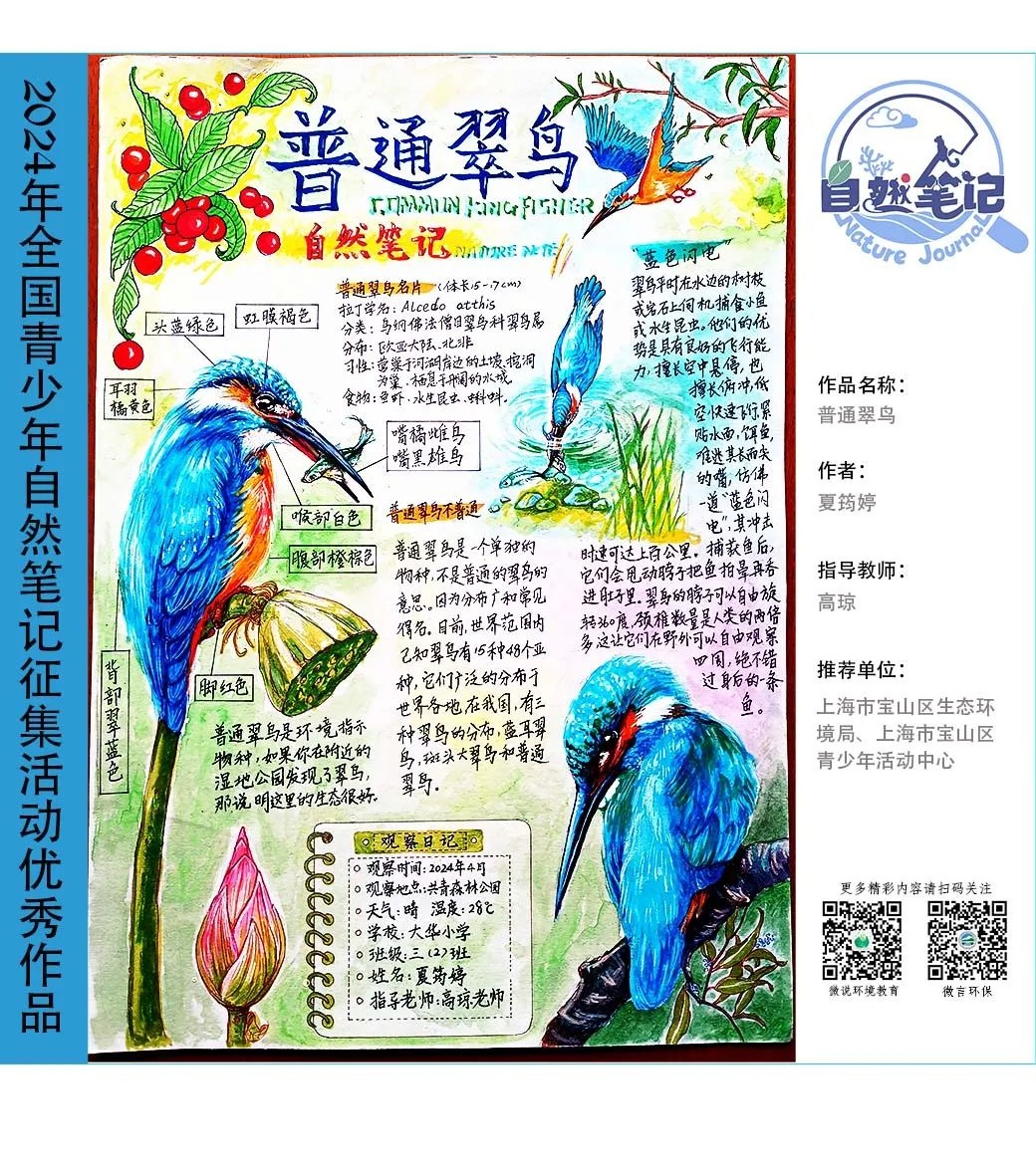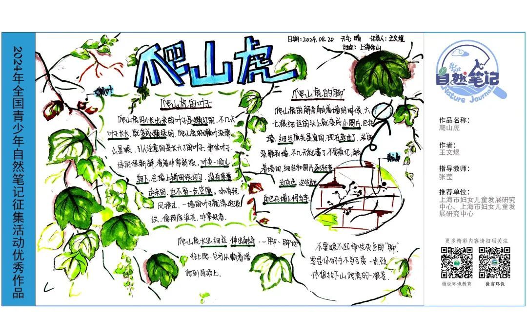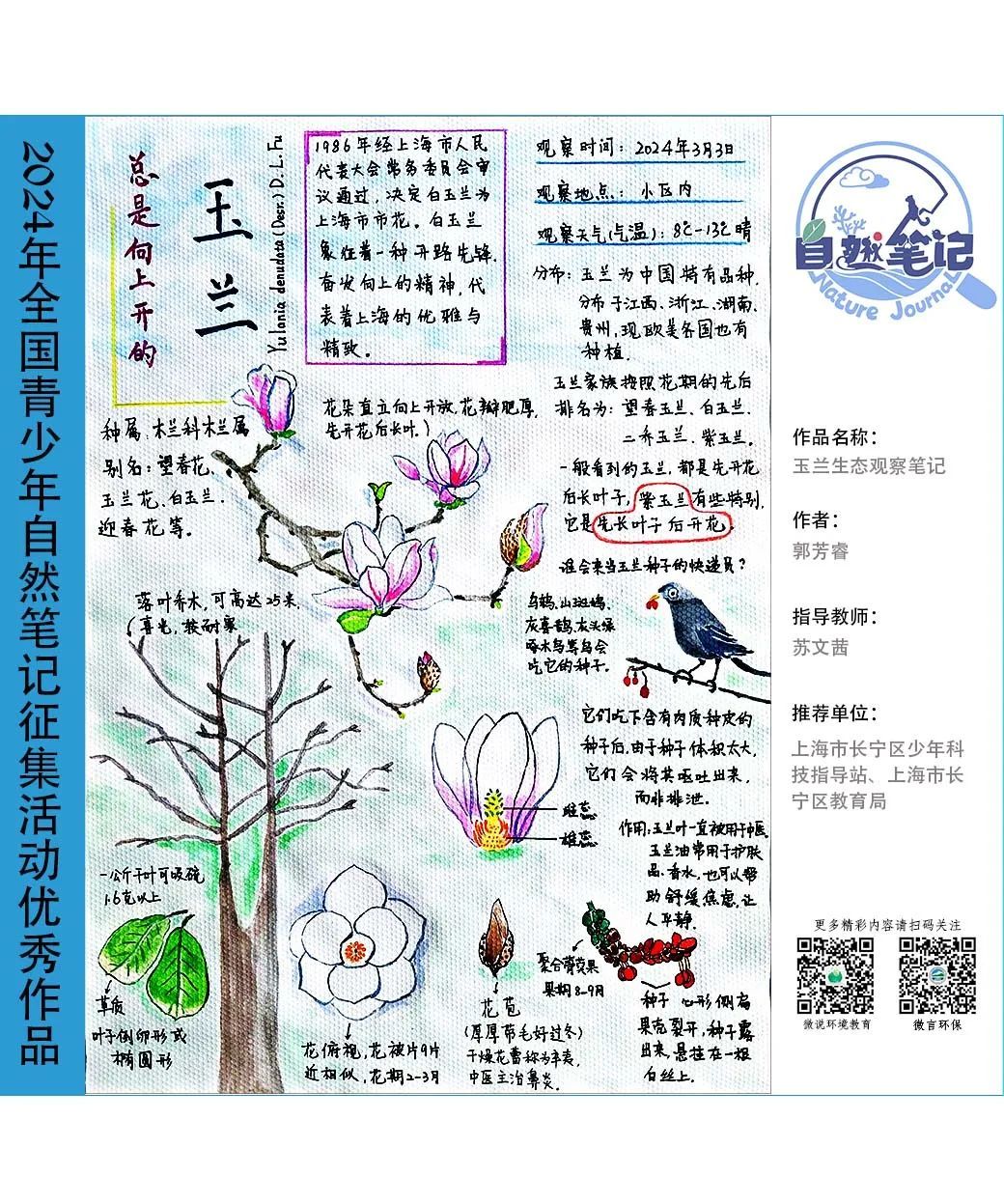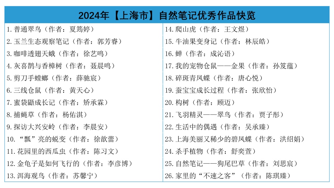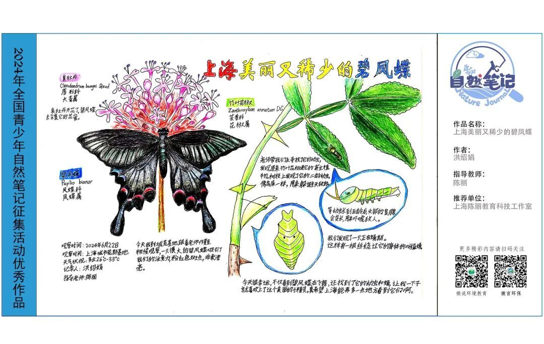 请一起来欣赏来自上海市的2024年青少年自然笔记优秀作品吧!