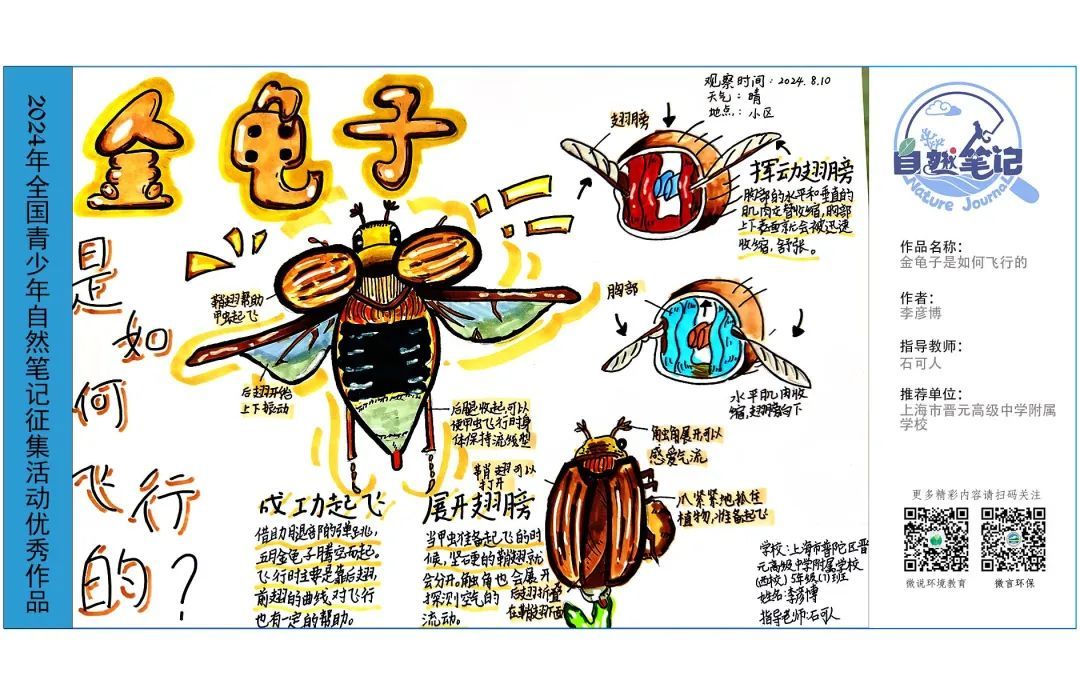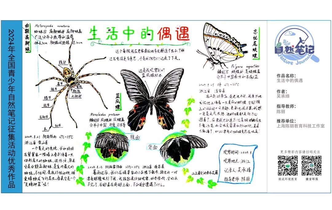 为广泛传播生态价值理念,引导和鼓励青少年走进自然、热爱自然、向自然学习,2024年青少年自然笔记征集活动的146幅优秀作品展示中。