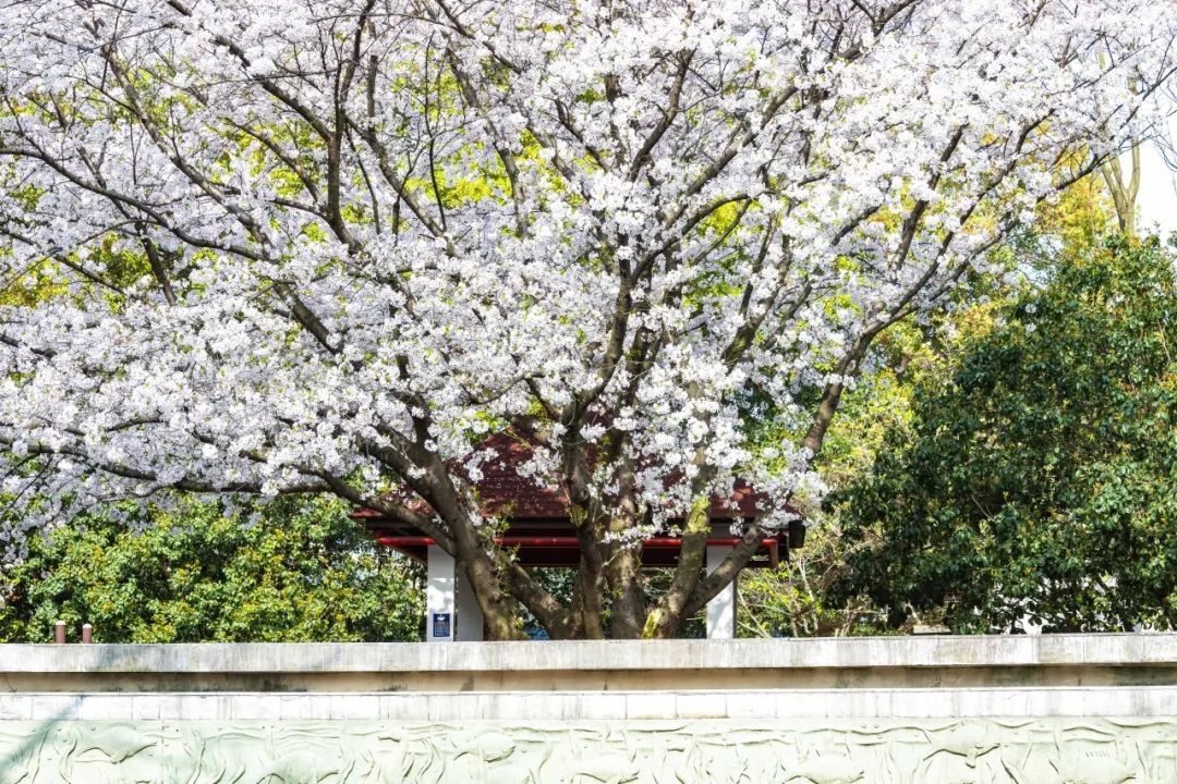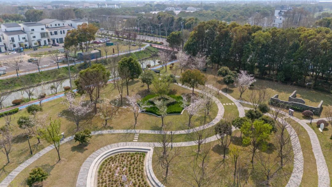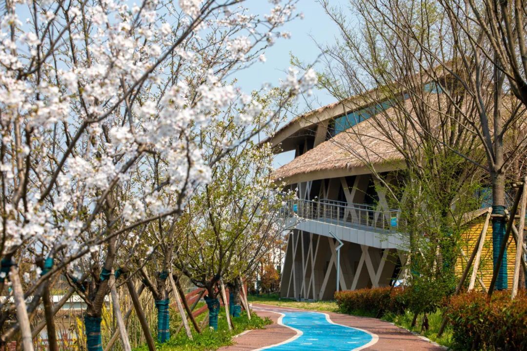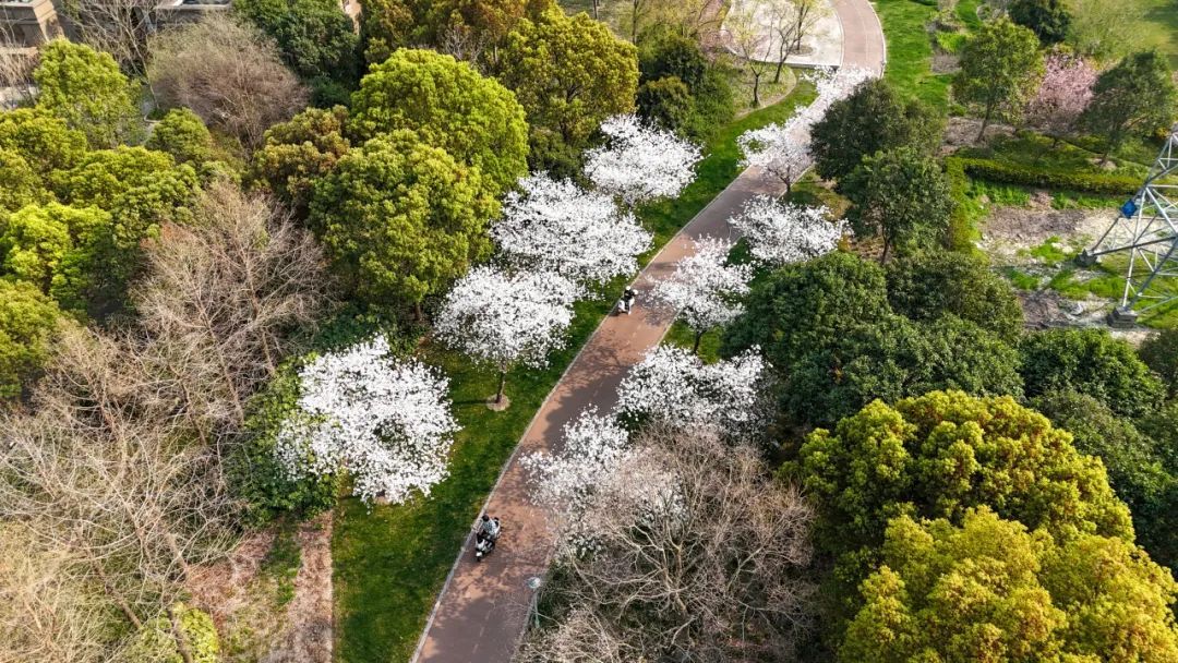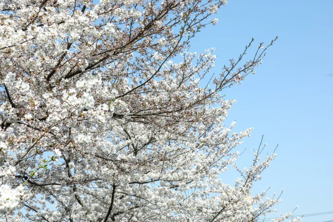 六墩村的樱花公园上千株染井吉野樱同时怒放,粉白云海直接漫到天边!绕着环形步道走一圈,头顶是颤巍巍的花枝,脚下是打旋儿的落樱。