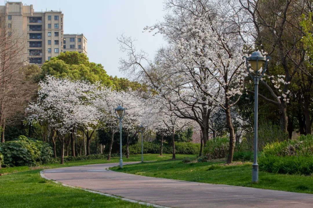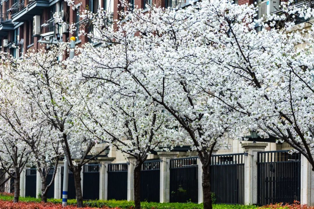 谁能拒绝高架桥下的粉色瀑布?海棠花园(S4高架两侧)的樱花像被施了魔法,硬核水泥森林里突然垂下千米柔粉花枝,骑车穿行时连发梢都会沾上花瓣。