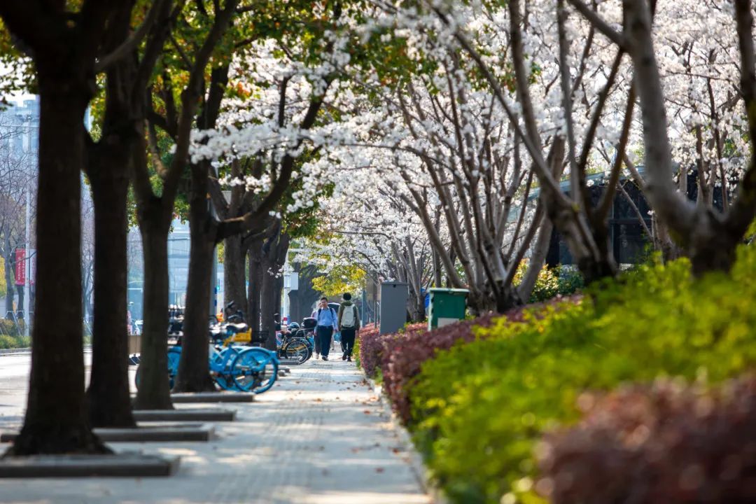 尚贤路两侧樱花树弯成拱形,骑车穿行时花瓣扑簌簌往脖子里钻,像闯进了宫崎骏的动画里。推荐清晨来拍“樱花早班车”——晨光斜照时,空荡荡的马路配着粉色花廊,随手拍都是杂志封面!