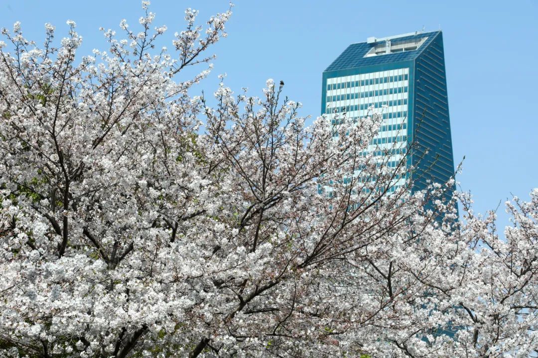 市民公园的樱花树低矮茂密,伸手就能碰到花瓣雨,带块野餐垫往草地上一铺,抬头就是流动的樱花天幕。