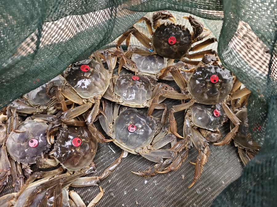 日前,崇明区水产技术推广站联合崇明河蟹产业集团、崇明河蟹协会,并邀请上海海洋大学专家教授,在江苏省盐城市射阳县委培基地举行“崇明1号”清水蟹蟹种繁育挂笼仪式,共同见证崇明品牌蟹种繁育的重要时刻。 濒临东海,沿滩涂向远处眺望,一大片池塘碧波如镜,映照着天光云影,几只装有“崇明1号”抱卵母蟹的网笼挂在塘边。工作人员捞起网笼,抓取几只母蟹,这些临产的母蟹大腹便便、活力十足。上海福岛水产养殖专业合作社负责人沈亚达细致观察,连连赞叹。“这只母蟹腹部鼓鼓,起码有6两重,产卵量可以达到40多万粒,孕育出的蟹苗质量一定不错。” 阳春时节,又迎来了河蟹“播种”的最佳季节。每年3月下旬至4月上旬是抱卵蟹集中挂笼排幼的最佳时节。基地负责人介绍,此次挂笼的抱卵蟹均达5两以上,母本群体经过严格筛选,背甲硬度、肝胰腺指数等关键指标均优于行业标准,配对的公蟹则达到7两以上。雌雄河蟹交配后,怀抱受精卵的雌蟹被称为“抱卵蟹”,每只抱卵量40-50万粒,亩产蟹苗约120斤。 抱卵蟹挂笼是河蟹育苗过程中的关键环节之一,育苗人员将抱卵蟹装入网笼中放入培育池的过程被称为“挂笼”,夜间,抱卵蟹将孵化出的幼体排入水中,进行“布苗”。“通俗地说,所谓‘挂笼’就是把蟹妈妈送进产房,等待集体生产。” 区水产技术推广站负责人介绍,“我们举办挂笼活动,组织养殖户到现场近距离观察母本规格、透明的育苗过程,就是让蟹农更放心。” 眼下虽然不是品蟹季,但养殖户们早已蠢蠢欲动,提前挑选蟹种的“优等生”。来自横沙岛新春村恒伟水产养殖合作社的蟹农吴炳昌从事养蟹20多年,以往在各地采购蟹苗,今年,他带着几名养殖户来到培育基地现场考察,“眼见为实,名不虚传,育苗环境生态,母蟹状态很好,蟹种都比较出挑,今年购苗就选‘崇明1号’了。”老吴信心满满。“养大一只蟹,先天条件要好,优生才能优育,抱卵蟹的规格大、抱卵数量多,育出的蟹苗身价就高,去年我们河蟹产业集团成员购苗后育成扣蟹,存活率很高,养大后的成蟹规格、质量、产量、销路都很好。”崇明河蟹产业集团董事长、河蟹协会会长黄春介绍。 显微镜下放大40倍的崇明清水蟹幼体1期 据了解,挂笼两三天后,蟹卵脱胎成为溞状幼体,溞状幼体在水中蜉蝣如头皮屑,但在显微镜下,却可以清晰地看到幼体的心跳和眼睛,在离水1小时的情况下还能成活,显示出顽强的生命力。溞状幼体经过5次蜕壳,变为大眼幼体,然后变为仔蟹,再经过若干次蜕壳,长为幼蟹,即人们常说的“扣蟹”,一生经过20次左右脱胎换骨,最终走上市民餐桌。 上海海洋大学水产专家王军介绍,在自然状态下,河蟹每年在江海之间进行生殖洄游,人工养殖后,要为它们另搬新家,在咸淡水交汇处寻找最佳产卵孵化地,江苏射阳是理想的繁育场所,被誉为全国蟹宝宝的“托儿所”。 区水产技术推广站组织专家,通过温控技术、增氧设施、在线监测等技术手段,精准模拟长江口天然产卵场生态环境,蟹卵成熟后,把母蟹迁出提温棚,转场至蟹种育苗塘挂笼产卵,预计首批优质蟹苗将于5月初上市。 “这批亲本是从去年首批上市的‘崇明1号’成蟹中万里挑一选出的种子选手,我们研究团队担任母蟹的‘助产师’,利用科技精心育苗,阶段性看,效果十分理想,蟹苗具有生长速度快、性腺发育优的特性,今后诞生蟹王蟹后有扎实的基础。”王军说,这批种苗到明年金秋季节开始“横行霸道”了,就可以“抓捕归案”,成为市民餐桌上的宠儿。 种业是现代农业发展的芯片,蟹种位于河蟹养殖产业链的上游,选好种,才能出好苗、养好蟹。自2022年种源计划实施以来,区农业农村委联合上海海洋大学科研团队通过系统性工程,成功构建起遗传性状稳定的种质资源库,通过统一供苗、标准养殖、品牌营销的协同机制,助力河蟹从种源到餐桌的全产业链增值,“崇明1号”优质蟹苗覆盖率越来越高,去年年产1.7万斤大眼幼体,今年计划投放2.5万斤,可供崇明6000亩扣蟹养殖需求,预计扣蟹产量1250万斤,可覆盖40万亩成蟹养殖,崇明河蟹产业高质量发展已进入了快车道。 记者:张永昌;摄影:陈冲 编辑:焦倩倩