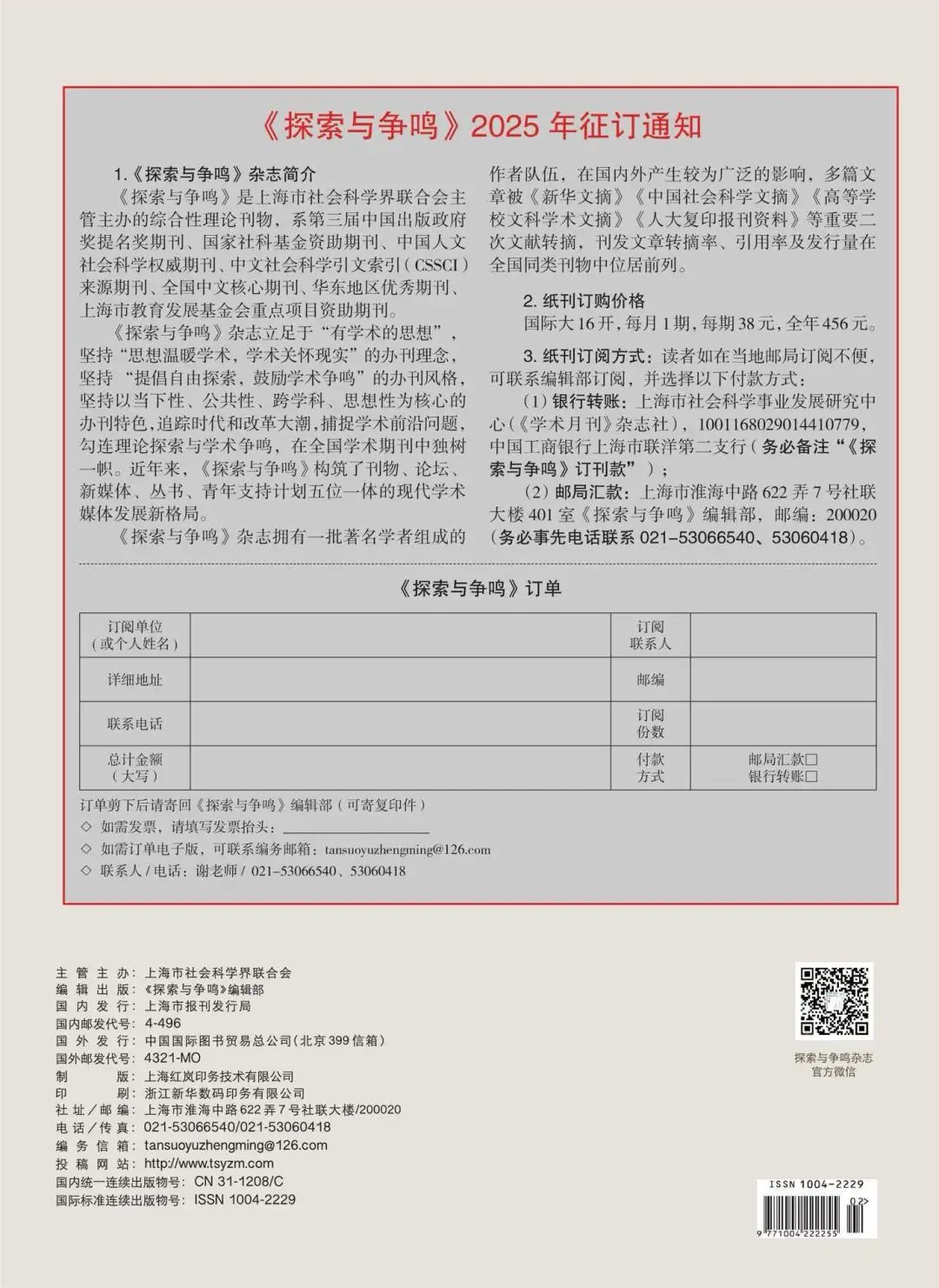 ——《探索与争鸣》编辑部