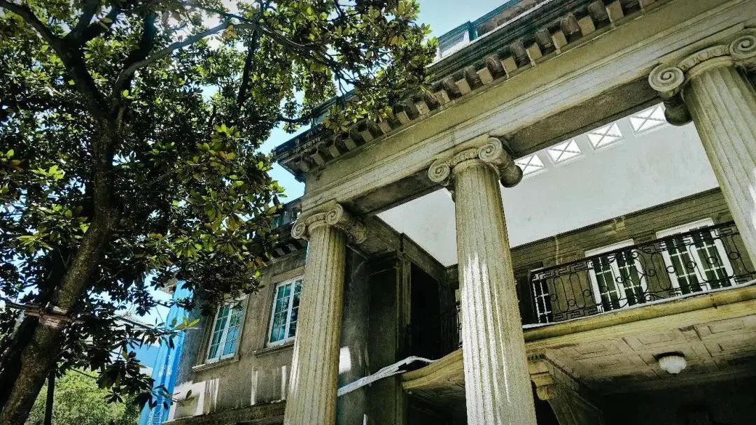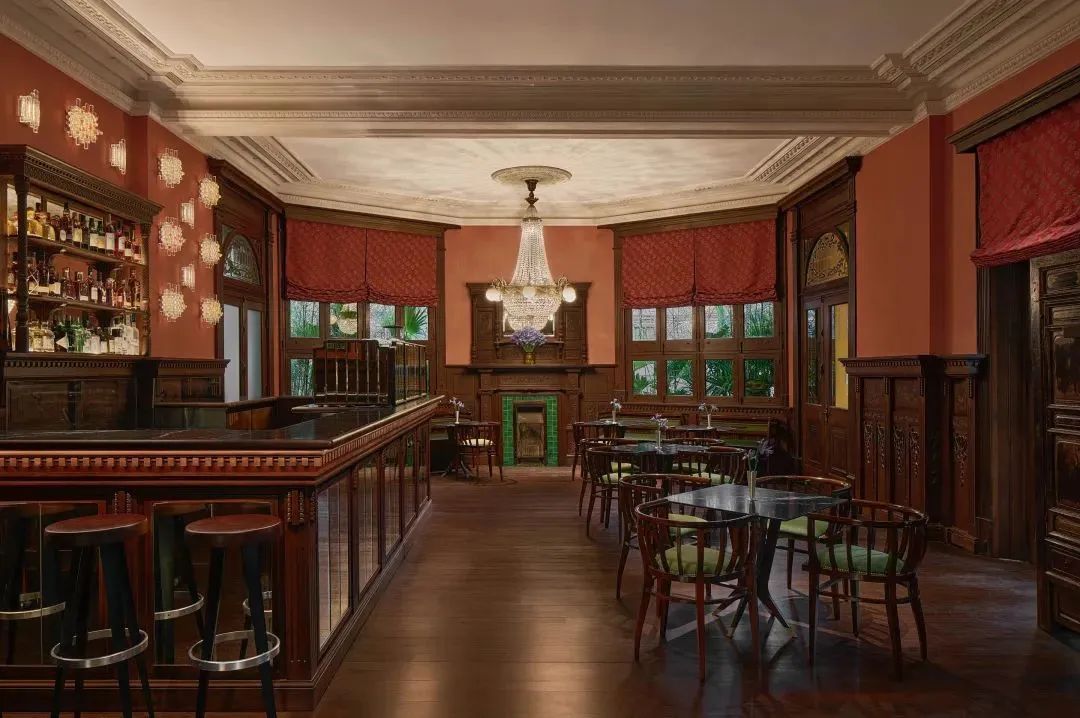 这幢伫立于繁茂花园之上的宏伟红顶大宅