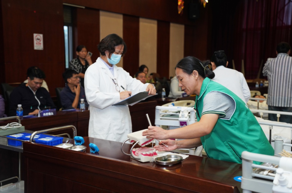 2024年长宁区第三届“人寿堂”杯长期护理保险护理服务技能竞赛分笔试和现场实操两个环节。笔试环节,从19家护理机构64名护理人员中,选拔了理论成绩前30名的选手进入实操决赛;实操环节,涵盖了特殊老人口腔护理、为偏瘫老年人进行穿脱衣训练、噎食应急处理等10项与失能老人密切相关的护理项目。本次技能竞赛有效提高了护理人员的业务技能,提高了区内长护险老人服务的感受度和满意度,也增强了护理服务人员的职业荣誉感。