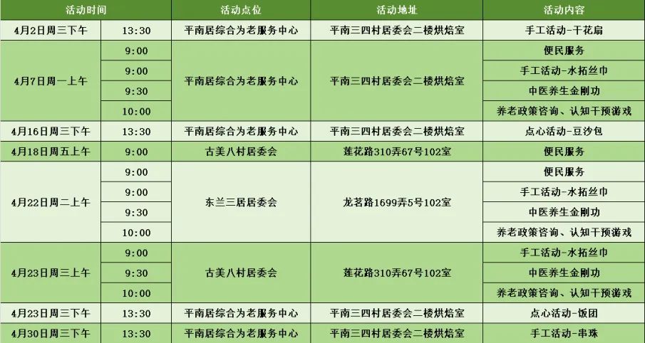 3月,古美4家综合为老服务中心共开展五场中医讲座活动。现场邀请中医执业医师讲解老年人常见疾病和中医调理方法;提供把脉咨询和养生建议;教授老人穴位按摩,缓解身体不适。