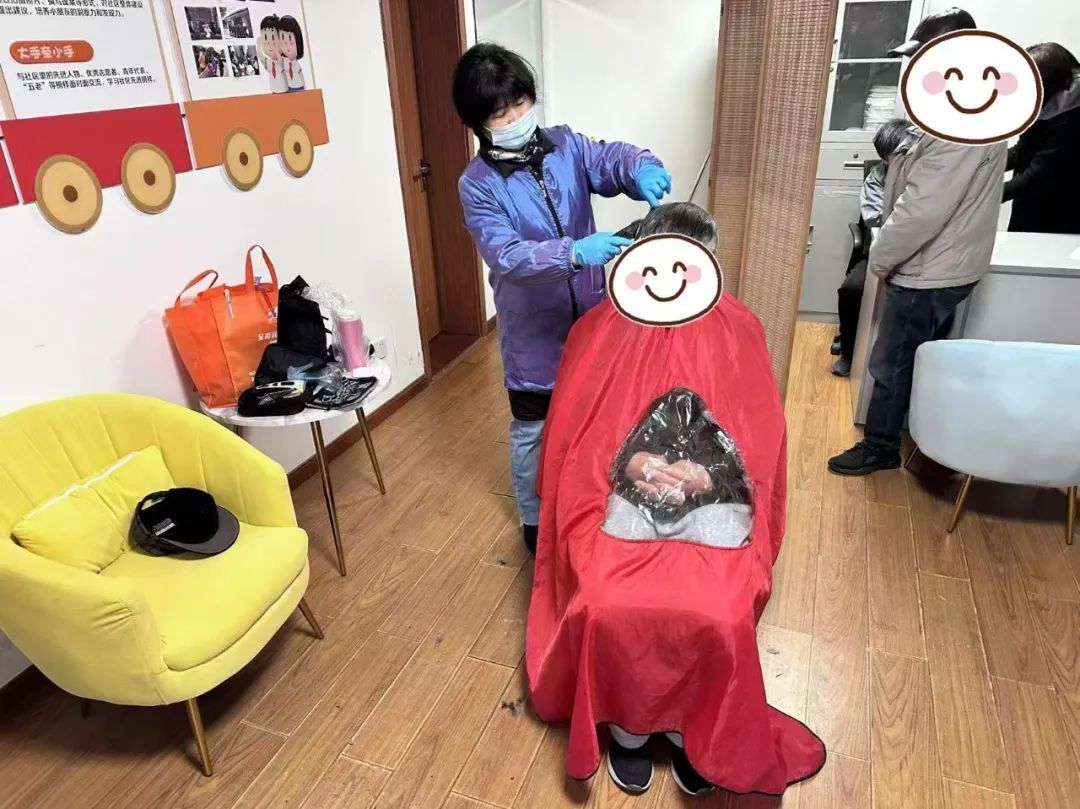在综合为老服务中心的“爱心义剪”区,一把剪刀、一把推子,理发师的手指灵活地在发间游走,他们手法娴熟地为居民修剪头发。“头发清爽,整个精气神都不一样了。”理完发的居民们纷纷露出笑容,很是满意自己的新发型。