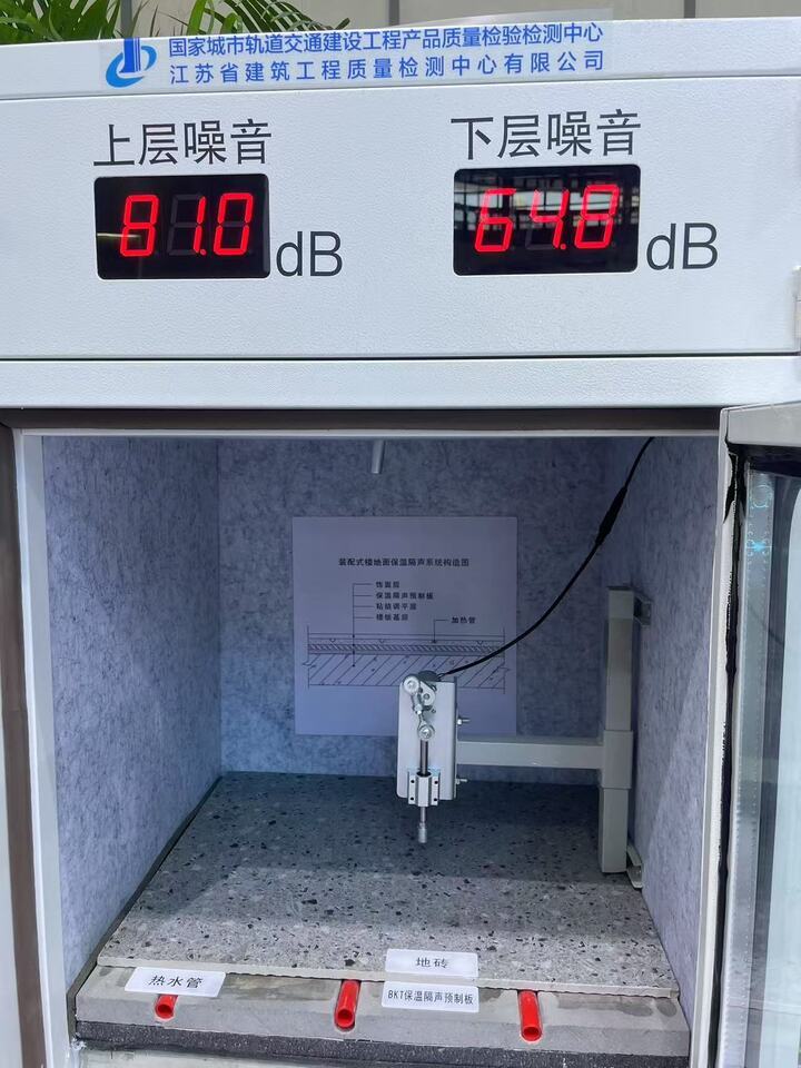 现场,一款装配式BKT保温隔声预制板,吸引了很多人目光。“预制板工厂化生产、现场组装,施工简单,还能节能降耗。”江苏博康特建材有限公司工作人员戚永康介绍,这款预制板集保温、隔声、减震于一体,厚度约4.5厘米,在其上面可直接铺地砖,相比过去分层铺装,可以使室内净高提高3厘米左右。楼板基层上铺装这款预制板,再铺地砖,可以起到隔音近20分贝的效果。此外,由于热水管加装于预制板最上面一层,离地砖更近,保温效果更快、更好。据他们测算,100平方米住宅每月能降低500元左右的天然气费用。