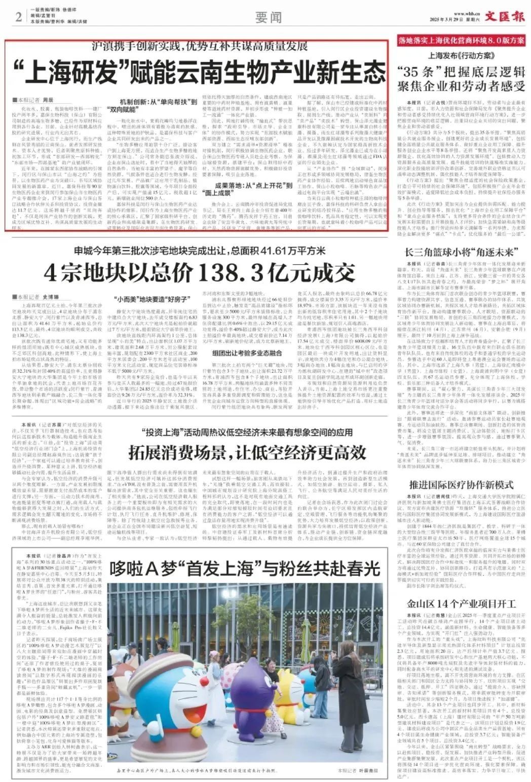 3月29日,《文汇报》2版要闻刊登了《“上海研发”赋能云南生物产业新生态》一文,一起来看看吧↓