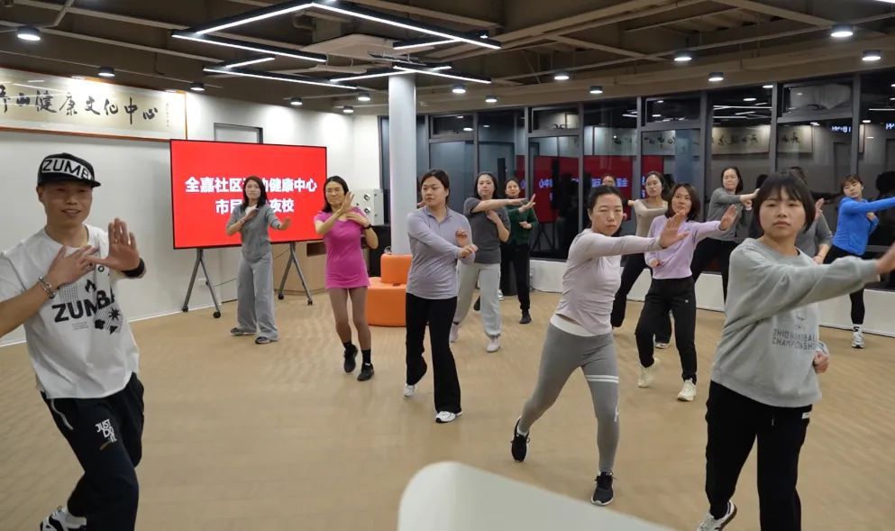 此外,太极拳、有氧操课程也同样受到市民的欢迎。在太极拳课堂上,学员们跟随着老师的动作缓缓起势,一招一式都透露着沉稳与内敛。有氧操课程则以其活泼欢快的节奏和多样化的动作组合,吸引了众多年轻学员参与。