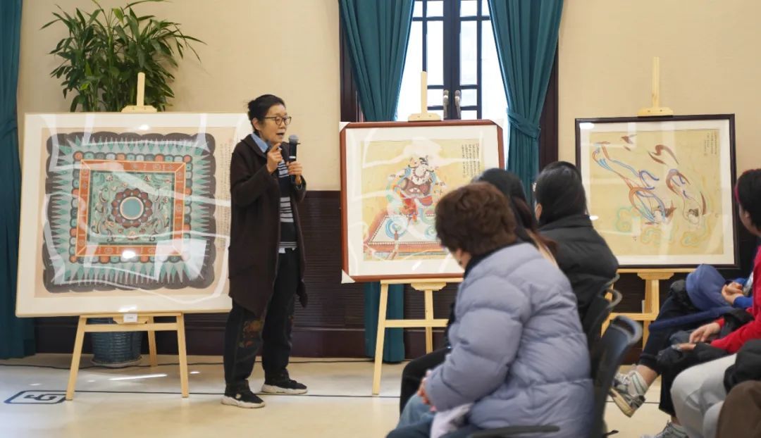 同时,在杨浦区图书馆总馆二楼互动交流区,布置有讲座配套微型展览,主题为“敦煌文脉映海派 丝路光影织秀带”,展期为3月14日至5月8日,介绍敦煌历史文化、馆藏艺术品、特色文创等内容,展现海派文化与敦煌文化两者交流碰撞出的别样火花。