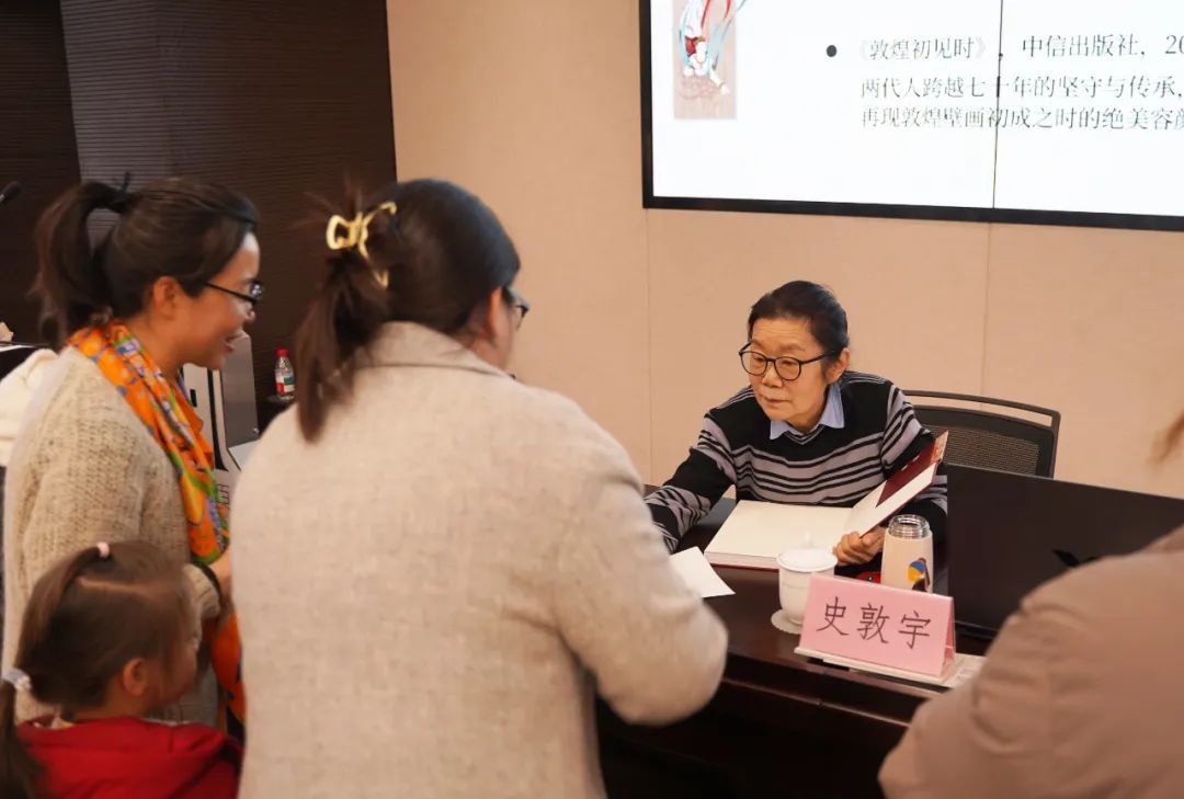 讲座尾声,史敦宇老师为其新作《敦煌初见时》举行了现场签售活动。这部图文并茂的作品集,既是敦煌艺术复原的实践指南,也是一个敦煌学者家庭的精神史诗。书中收录了史敦宇老师近百幅珍贵手稿,包括早期洞窟临摹笔记、矿物颜料调配记录,以及她与父母在莫高窟生活的老照片。