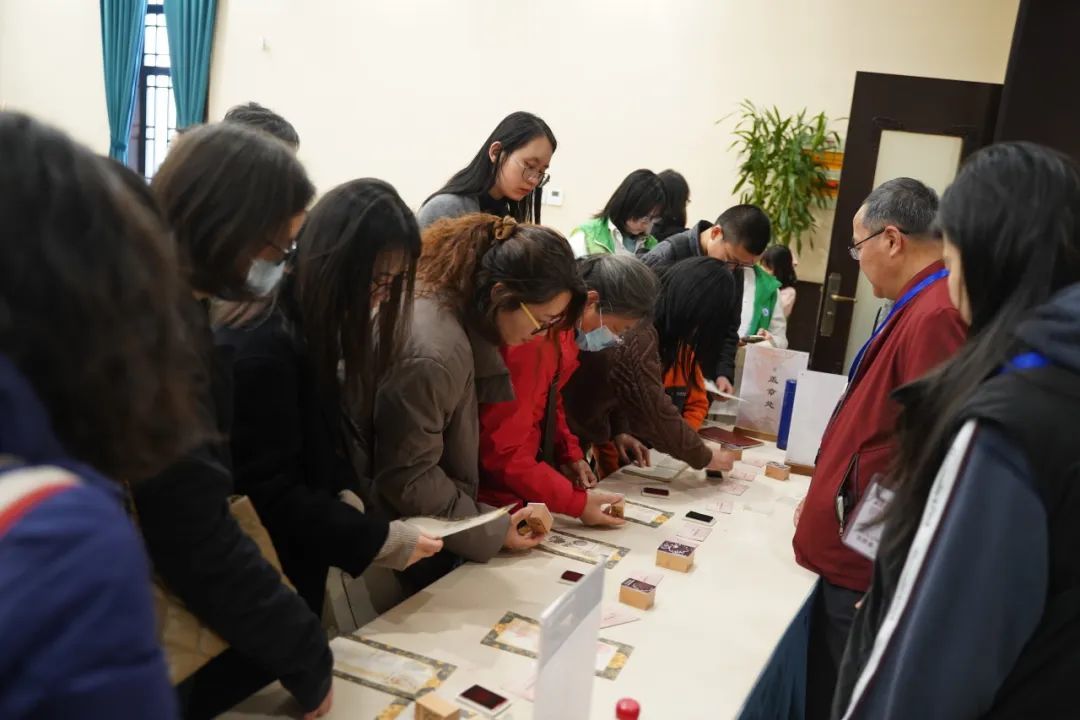 活动现场还特别设置了敦煌壁画印章体验,提供了十余种敦煌壁画元素印章,包括飞天印象、鹿王本生、菩萨伎乐等经典图案。在印章体验区域,读者与留学生们纷纷在空白信笺上盖印属于自己的敦煌记忆。许多留学生同学表示,印章体验既有趣又有教育意义。通过亲手印在纸上的敦煌壁画元素,更深刻体会到敦煌艺术中线条的精美与色彩的层次,对于敦煌这座人类文化瑰宝有了更深入的了解。