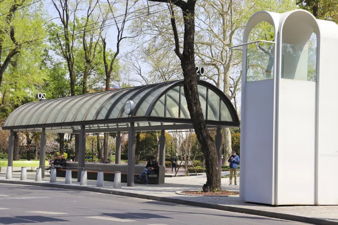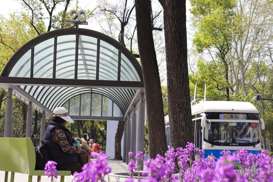 据了解,20路中山公园万航渡路公交站此前结合中山公园整体开放及品质提升,其整体风格与周边建筑景观环境进行了一体化融合设计。
