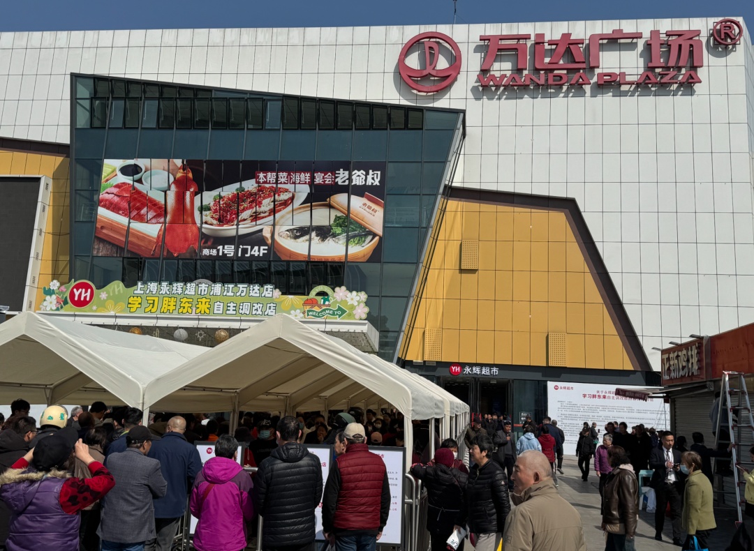 今天上午八点半,初春的寒潮还未全部褪去,上海永辉超市“学习胖东来”模式升级门店——浦江万达广场店门口却一派火热景象,顾客队伍已经排到了超市入口处两三百米。