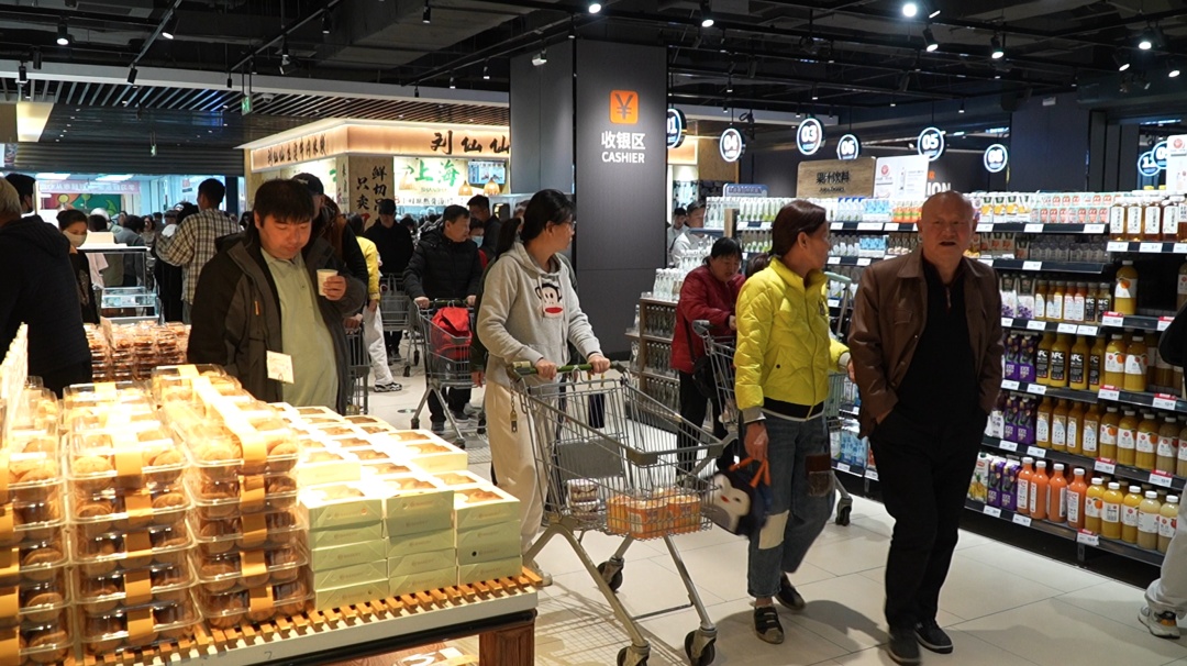 记者从超市了解到,截至下午5点10分,客流量达1.6万人次。调改后,商品汰换率达70%,累计下架5762支单品,并新增2665支商品,进口商品占比提升至20%,烘焙、熟食等鲜食比例从5%跃升至20%,商品结构接近胖东来标准的80%。门店聚焦“健康饮食+精致生活”,打造“全球精选+上海味道”的特色矩阵。
